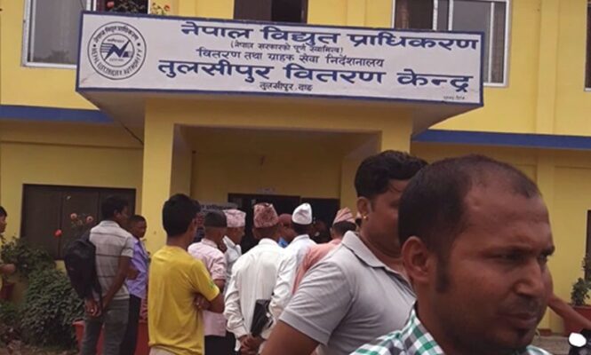 तुलसीपुर, १६ फागुन । नेपाल विद्युत प्राधिकरण वितरण केन्द्र तुलसीपुरले ८ सय ८८ ग्राहाकको लाइन काटेको छ । ६० दिन भन्दा बढि विद्युतको बक्यौता रकम बाँकी रहेका ग्राहकको लाइन काटिएको वितरण प्रमुख शिव नारायण गोशलीले बताए । “हाम्रो नियमले विद्युत बक्यौता तिर्न बाकी ६० दिन भन्दा बढि भएमा लाइन काट्ने … Continue reading तुलसीपुरमा ८ सय ८८ जनाको लाइन काटियो