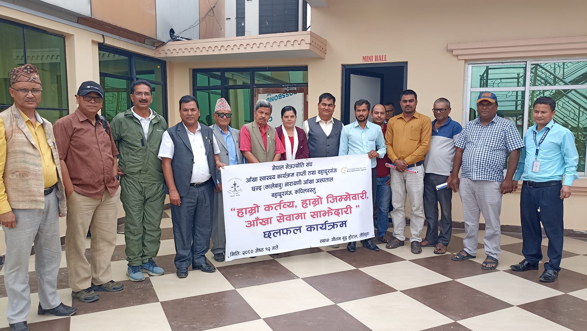 नेपाल नेत्रज्योति संघ, आँखा स्वास्थ्य कार्यक्रम राप्ती तथा बहादुरगञ्ज अन्तर्गत सञ्चालित छन्द कालेबाबु नारायणी आँखा अस्पताल बहादुरगञ्ज कपिलवस्तुको आयोजना तथा एनएवीपी नर्वेको आर्थिक सहयोगमा नेपाल कपिलवस्तुमा आयोजना गरिएको छलफल सहभागी पालिकाका प्रमुख उपप्रमुख र प्रशासकहरुले पालिकामा भएको अन्धोपन न्यूनिकरणका लागि साझेदारी गर्ने बताए ।