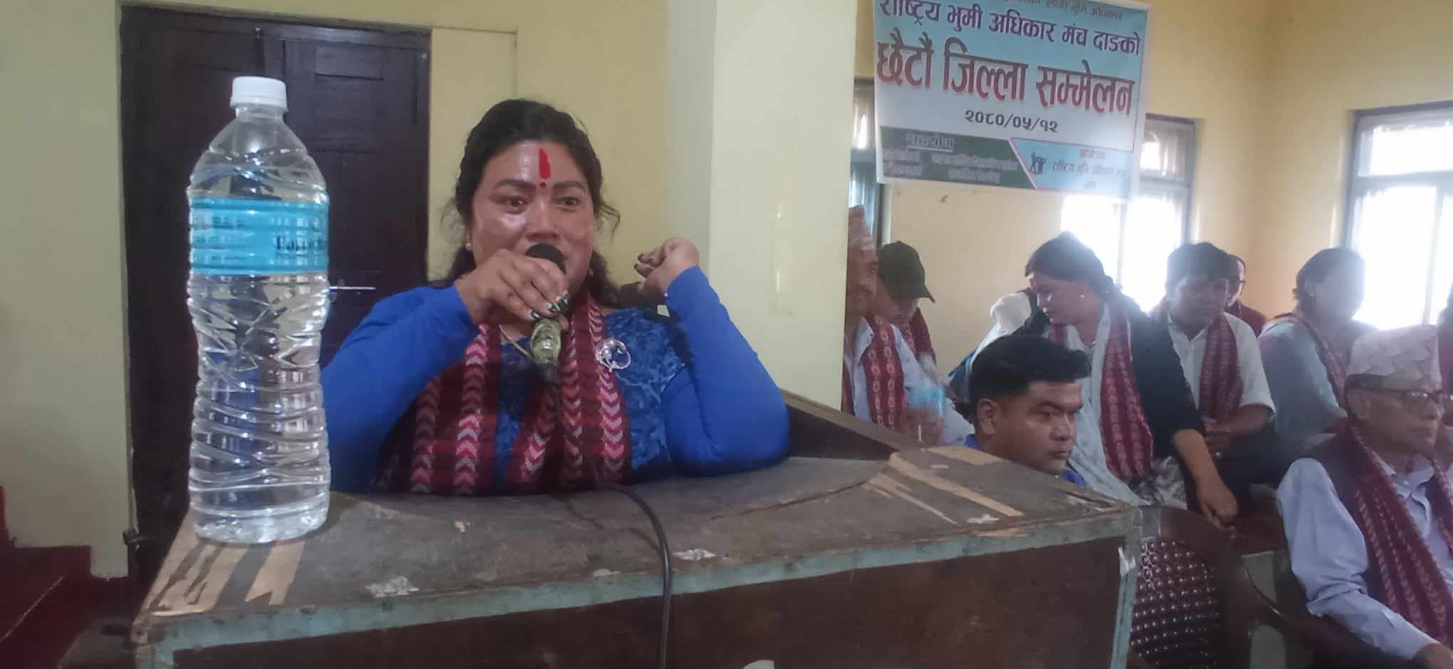 दाङ, १२ भदौ । राष्ट्रिय भुमी अधिकार मञ्च दाङको छैटौ जिल्ला सम्मेलन मंगलबार घोराहीमा सम्पन्न गरिएको छ । सम्मेलनमा सहभागी हुनका लागि जिल्लाका विभिन्न स्थानबाट आएका नागरिकहरुले नेता र सरोकारवाला निकायले लालपुर्जा दिने आश्वासन दिएपनि आफ्ना लागि प्रभावकारी योजनाका साथ काम हुन नसकेको गुनासो गरेका थिए ।