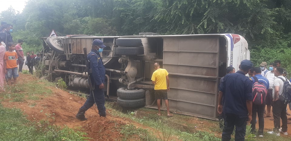 आइतबार दिउँसो २ बजेको समयमा अगाडिको टायर पड्किदा बस अनियंत्रित भएर पलटिएको वडा प्रहरी कार्यालय लमहीले जनाएको छ ।