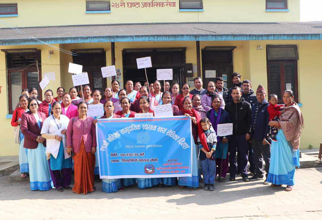 सिसहनियाँ स्वास्थ्य चौकी महिला स्वास्थ्य स्वयमसेविकाकी अध्यक्ष श्यामा रावतको अध्यक्षता एवम् राप्ती गाउँपालिकाका अध्यक्ष प्रकाश विष्टको प्रमुख आतिथ्यता तथा उपाध्यक्ष कमलापती चाैधरीकाे विशिष्ट आतिथ्यतामा भएको कार्यक्रममा अध्यक्ष विष्टले स्वास्थ्य क्षेत्रमा महिला स्वयंसेवीकाहरुकाे याेगदान अतुलनीय रहेको बताउनुभयो ।