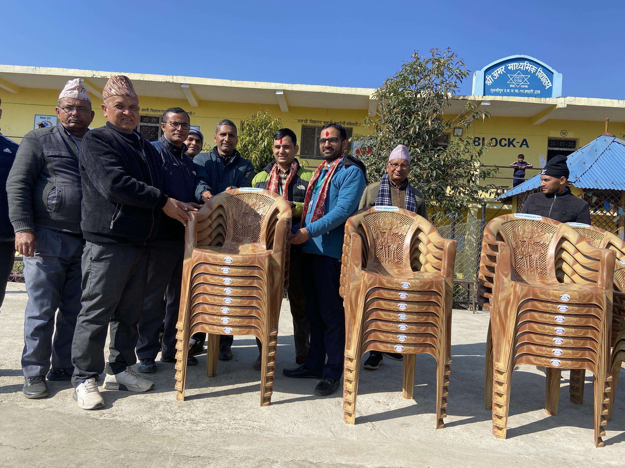 तुलसीपुर स्थित सिटिजन्स बैंकले एक विद्यालयलाई प्लाष्टिकका कुर्सी सहयोग गरेको छ । बैंकले वडा नम्बर ११ मा रहेको अमर माध्यमिक विद्यालयलाई ५० थान कुर्सी सहयोग गरेको हो ।