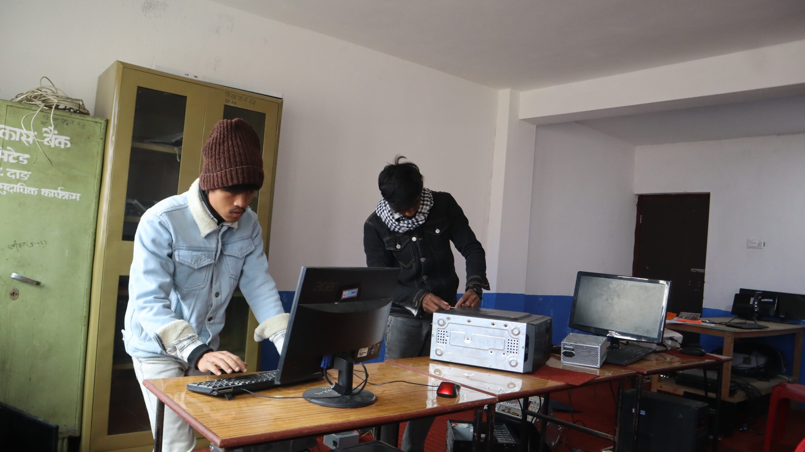 कम्प्युटर ल्याबको कोठा पुरै भरिने गरी कम्प्युटरहरु छन् तर त्यहाँ विद्यार्थीहरु पसेर नचलाएको केयौ दिन भयो । कम्प्युटरको मोनिटरमा लागेको धुलोले नै यसको संकेत गर्दछ । तिनै कम्प्युटरमा लागेको धुलो सफा गरेर वन्द रहेका कम्प्युटर सुचारु गर्नका लागि दुई जना युवाहरुलाई हम्मे हम्मे परेको छ । तर दुइदिनको निरन्तर खटाइ पश्चात कम्प्युटर ल्याबमा रहेका कप्प्युटर सफा मात्रै भएनन् बन्द अवस्थामा रहेका कम्प्युटर सञ्चालनमा समेत आए र केयौ दिनपछि विद्यार्थीहरुले कम्प्युटरका किबोर्ड थिच्न थाले ।