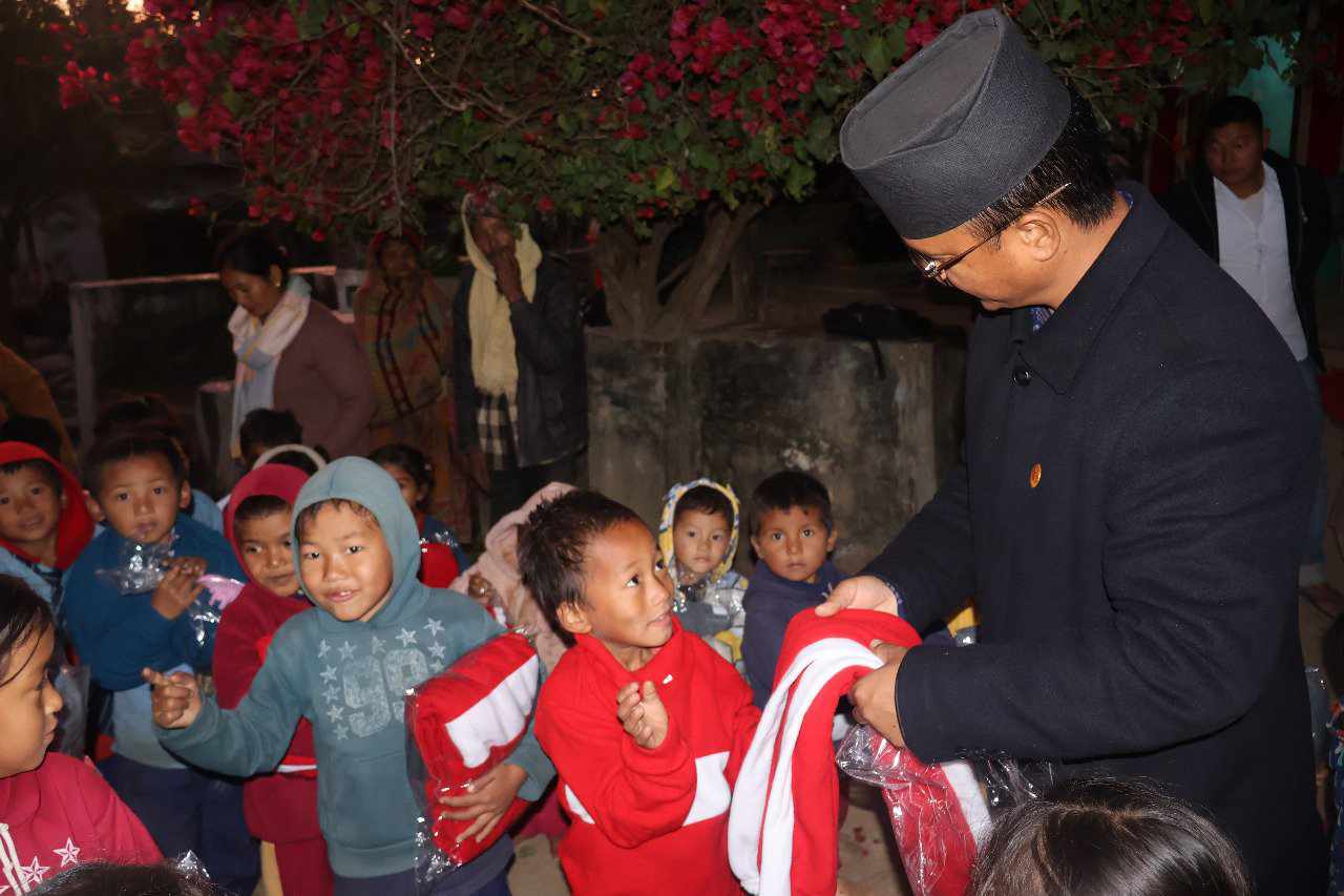 जाडो मौसमका समयमा न्यानो कपडा नभएको कारण विद्यालयमा आएर अध्ययन गर्न समस्या हुने तथा घरको आर्थिक अवस्था कमजोर भएका कारण शैक्षिक उपलब्धिको स्तरलाई उकास्न समस्या भएकाले गाउँपालिकाको सहकार्यमा क्रियटिङ पोसिबिलिटिज ९सिपी० नेपाल संस्थाले बाल विकासदेखि कक्षा ५ सम्मका विद्यार्थीहरुलाई उक्त सामाग्री वितरण गरेको हो।