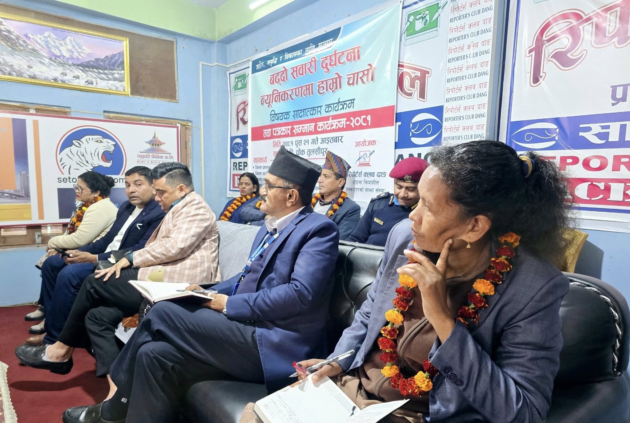 पछिल्लो समय दाङमा दुर्घटना बढिरहेका छन् । विगत भन्दा यस वर्ष दुर्घटना बढेपछि सरोकारवालाले पनि चासो देखाएका छन् । रिपोर्टर्स क्लव नेपाल दाङ शाखाले आइतबार तुलसीपुरमा आयोजना गरेको ‘बढ्दो सवारी दुर्घटना न्यूनिकरणमा हाम्रो चासो’ विषयक साक्षात्कार कार्यक्रममा सडकको अबस्थाले दुर्घटनाको जोखिम बढिरहेको बताएका थिए ।