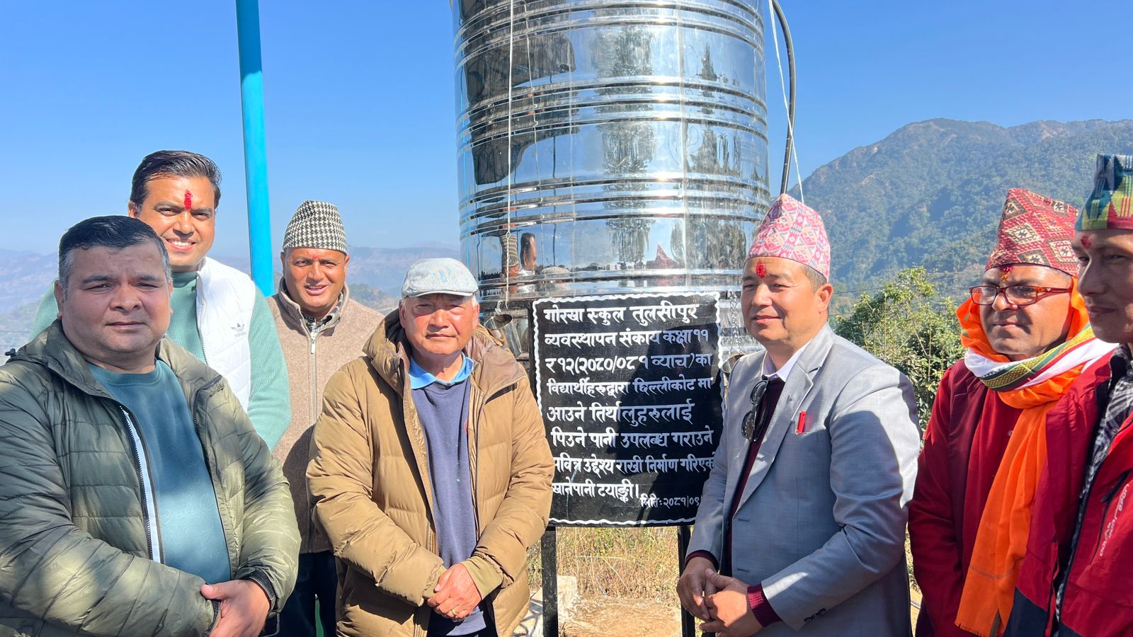 गोरखा ग्रुपका अध्यक्ष बिष्णु घर्तीको अधयक्षता तथा तुलसीपुर १९ का वडाध्यक्ष प्रेमनाथ योगीको प्रमुख आतिथ्यमा कार्यक्रम गरि उक्त ट्याङ्की हस्तान्तरण गरिएको हो । त्यस अवसरमा प्रमुख अतिथि योगीले किताबी ज्ञान मात्र नभई सामाजिक कार्यमा लाग्ने प्रेरना दिन यस्ता कार्य गर्नुपर्ने बताएका थिए ।