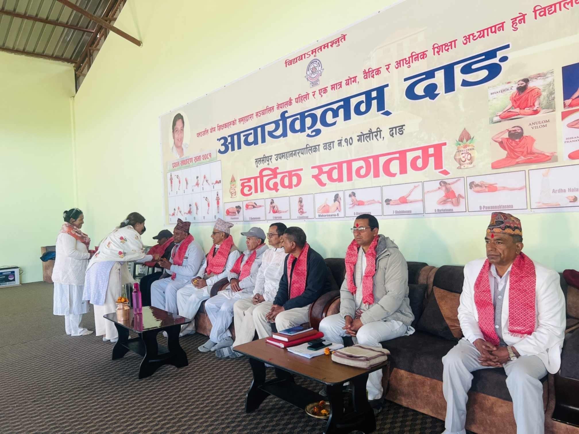 आचार्यकुलम् दाङको प्रथम वार्षिक साधारणसभा भएको छ । संस्थाका अध्यक्ष दीपक बस्यालको अध्यतामा तथा तुलसीपुर उपमहानगरपालिकाका प्रमुख टिकाराम खड्काको प्रमुख आतिथ्यमा कार्यक्रम भएको हो । त्यस अवसरमा प्रमुख अतिथि खड्काले आचार्यकुलम्ले दिइरहेको शिक्षा अहिलेको आबश्यकता रहेको बताए ।
