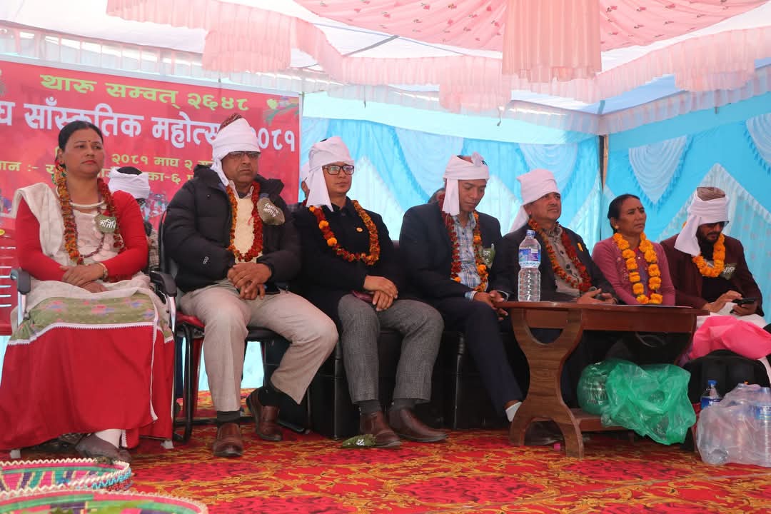 थारु कल्याणकारिणी सभा राप्ती गाउँपालिका इकाई समितिका अध्यक्ष नेत्रराज चौधरीकाे अध्यक्षता एवम् पूर्वमन्त्री तथा लुम्बिनी प्रदेश सभा सदस्य इन्द्रजित थारुकाे प्रमुख आतिथ्यतामा सम्पन्न कार्यक्रममा बाेल्दै प्रदेश सभा सदस्य थारुले माघि पर्वलाई नवपाषाण युगको गण प्रथासँग जोड्दै यसले समाजमा एकता र सामूहिकतामा आधारित परम्पराको निरन्तरता दिने बताउनुभयो।