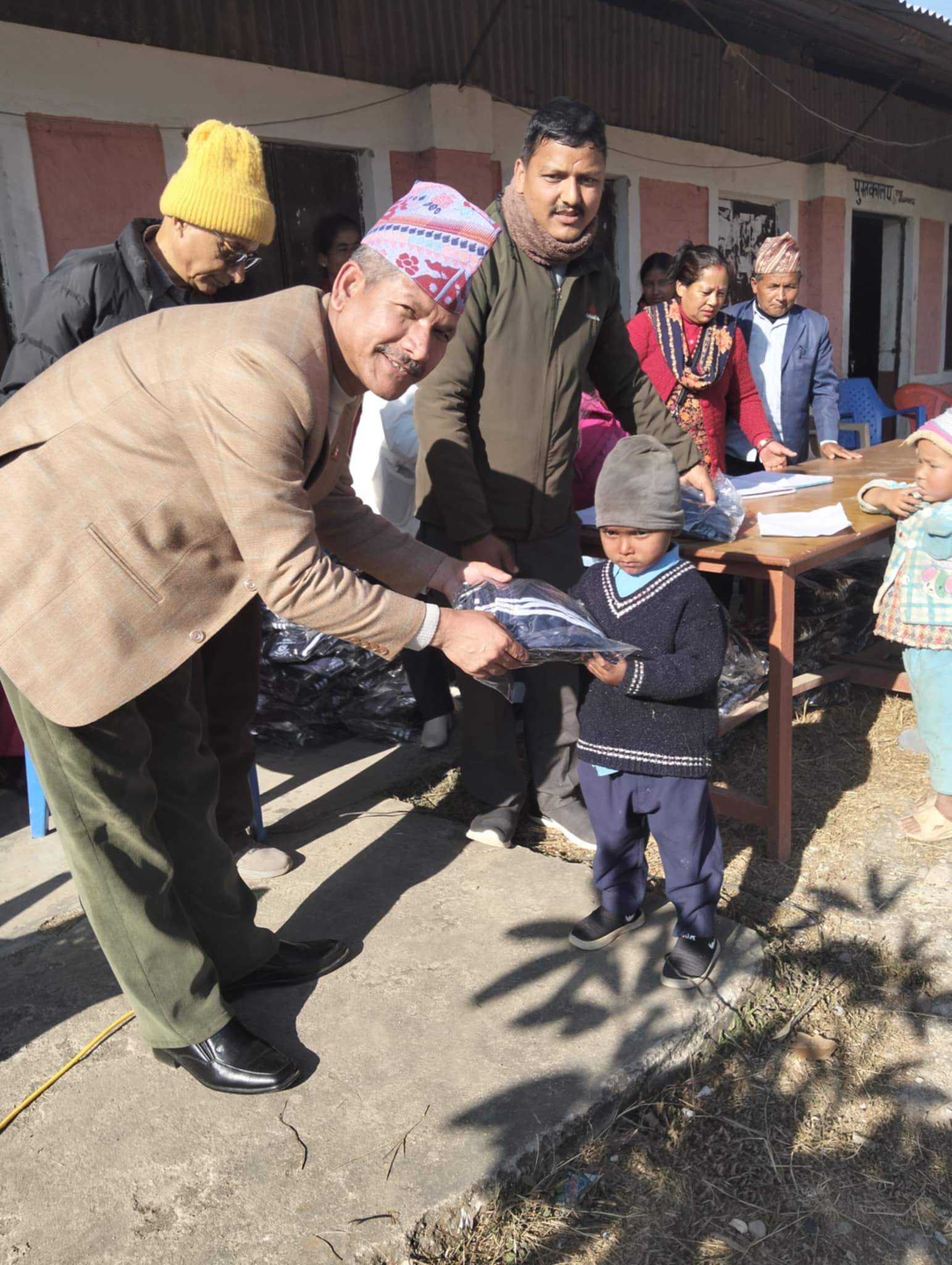 तुलसीपुर उपमहानगरपालिका वडा नं. १९ का कार्यबाहक वडाध्यक्ष रामबहादुर पौडेलका अनुसार नवजागरण मावि कुटेचौर, मावि भित्री सक्राम, गणेश प्रावि सक्राम र गणेश प्रावि तिनुखोलामा अध्ययन गर्ने विद्यार्थीहरुलाई ६५० थान न्यानो कपडा वितरण गरिएको हो । पौडेलका अनुसार सामुदायिक विद्यालयमा पढ्ने विद्यार्थीहरुलाई जाडोयाममा पोशाककै कारण विद्यालयमा नआउने अवस्था अन्त्य गर्नका लागि दुई वर्षदेखि जाडोयाममा न्यानो कपडा वितरण गर्न सुरु गरिएको बताउनुभयो ।