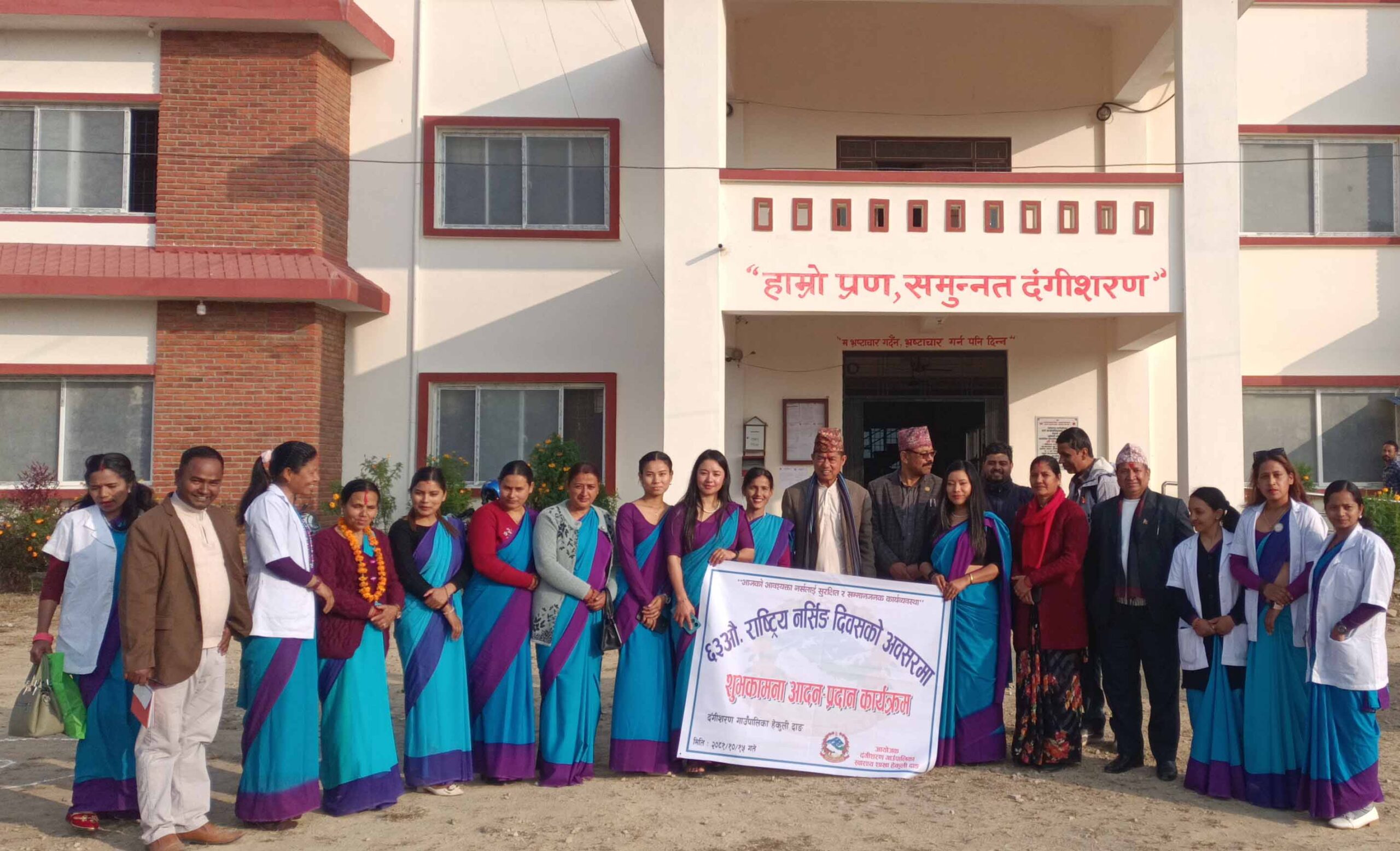 ‘आजको आवश्यकता नर्सलाई सुरक्षित र सम्मानजनक कार्य ब्यबस्था’ भन्ने मुल नाराकासाथ दंगीशरण गाउँपालिका स्वास्थ्यसाखाले ६३ औं राष्ट्रिय नर्सिङ दिवस विविध कार्यक्रमको आयोजना गरी मनाएकोछ ।