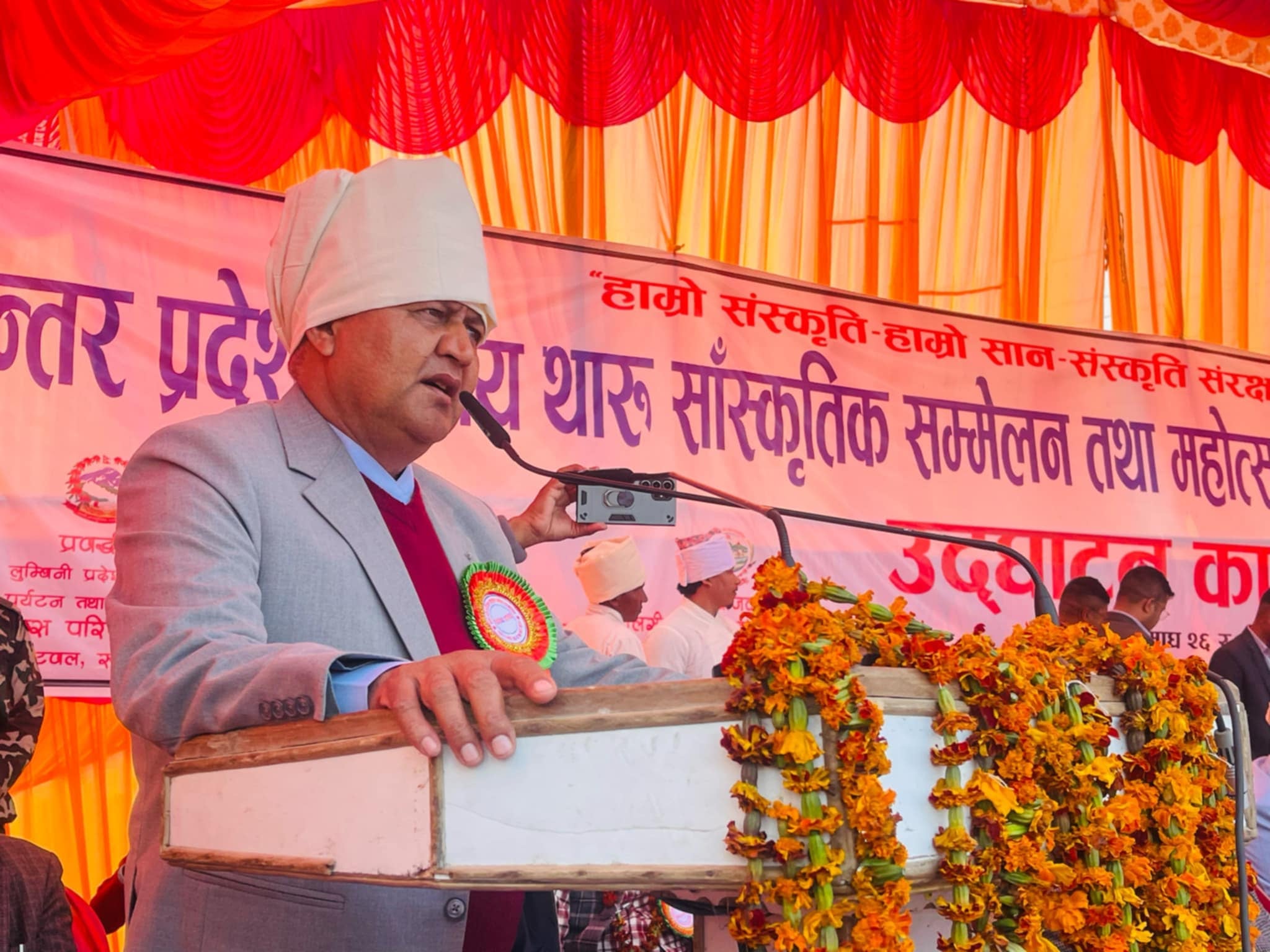 लुम्बिनी प्रदेशका मुख्यमन्त्री चेतनारायण आचार्यले परम्परागत मौलिक कला संस्कृति संरक्षण गर्दै त्यसलाई समुदायको आयआर्जनसँग जोड्नुपर्ने बताउनु भएको छ । अन्तरप्रदेश स्तरीय थारु सांस्कृतिक सम्मेलनको दाङको चखौरामा उद्घाटन समारोहलाई सम्बोधन गर्दै मुख्यमन्त्री आचार्यले थारु समुदायको मौलिक कला, संस्कृति संरक्षण गर्दै त्यसलाई आर्थिक आम्दानीसँग जोड्न आवश्यक रहेको बताउनु भएको हो ।