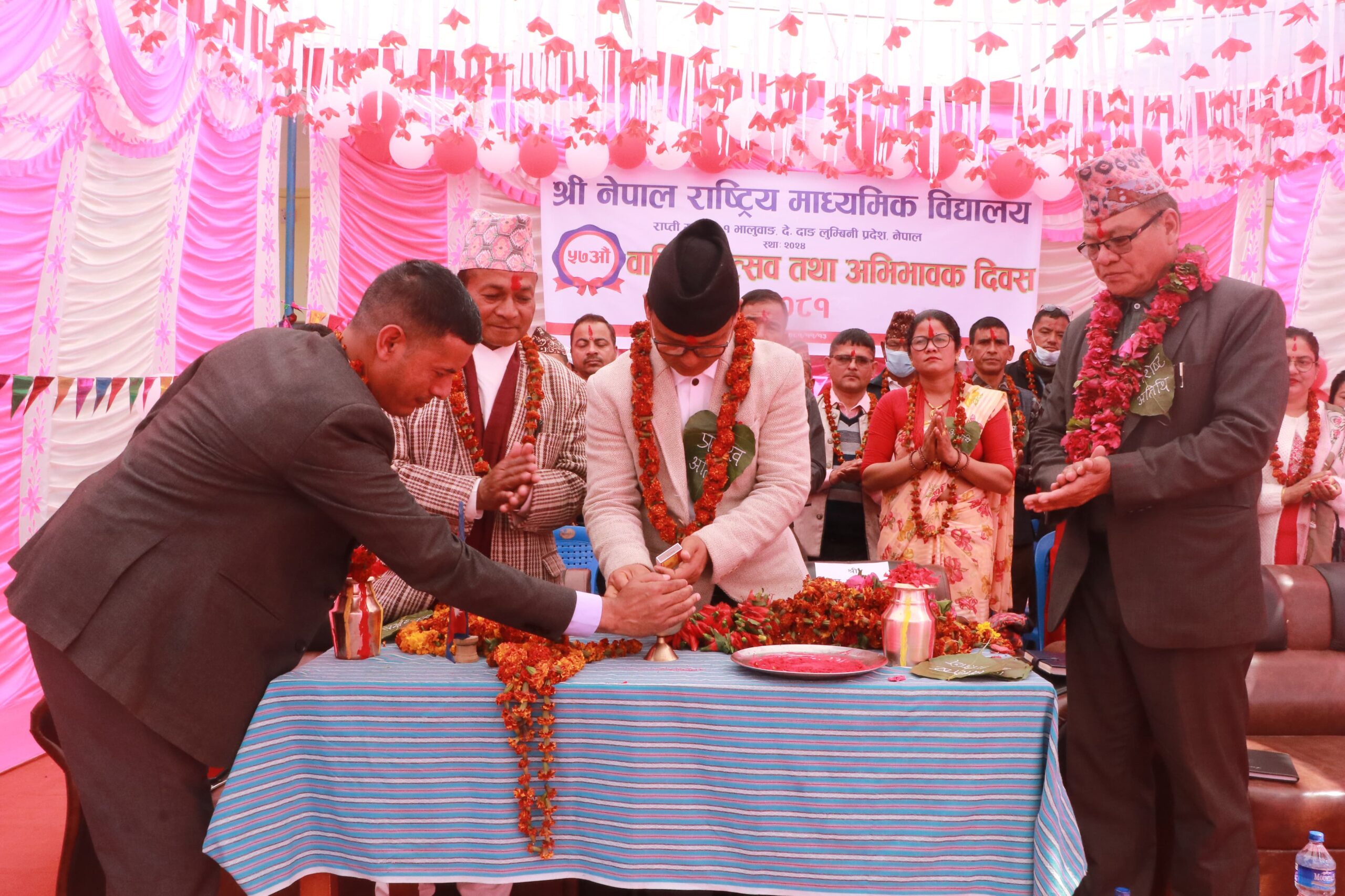राप्ती गाउँपालिका–१ भालुबाङस्थित नेपाल राष्ट्रिय माध्यमिक विद्यालयले ५७ औं वार्षिकोत्सव तथा अभिभावक दिवस मंगलबार भव्य रूपमा सम्पन्न गरेको छ। विद्यालय व्यवस्थापन समितिका अध्यक्ष भीम बहादुर मरासिनीको अध्यक्षतामा तथा राप्ती गाउँपालिकाका अध्यक्ष प्रकाश विष्टको प्रमुख आतिथ्यतामा सम्पन्न कार्यक्रममा विभिन्न व्यक्तित्वहरूले शैक्षिक गुणस्तर सुधार र विद्यालयको भूमिकाका विषयमा धारणा राखेका थिए।