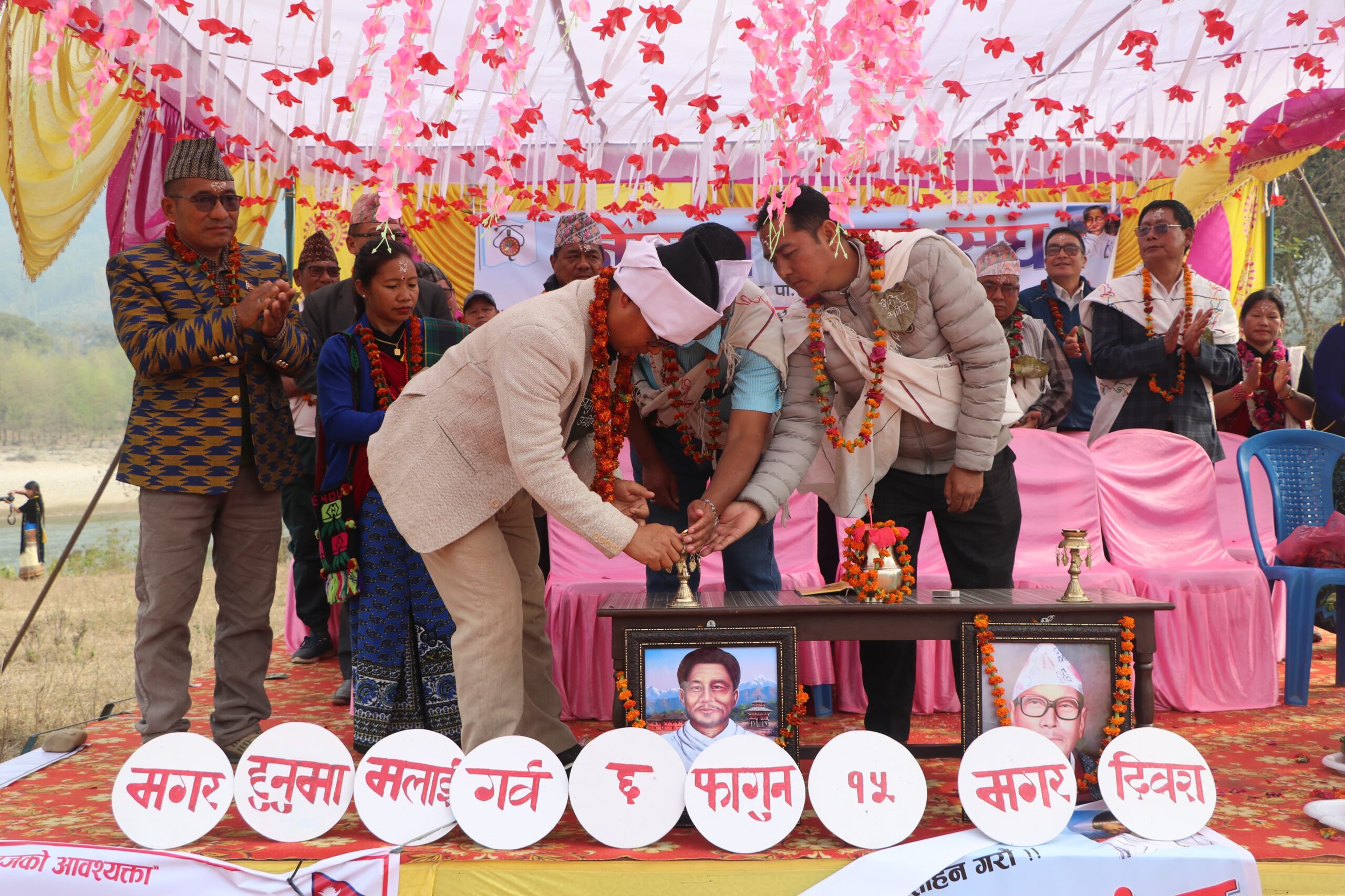 नेपाल मगर संघ राप्ती गाउँपालिका समितिका अध्यक्ष हिरा झाँक्री मगरको अध्यक्षता तथा राप्ती गाउँपालिकाका अध्यक्ष प्रकाश विष्टको प्रमुख आतिथ्य र नेपाल मगर संघ केन्द्रीय समितिका सल्लाहकार डा. भोजविक्रम बुढा मगरको विशिष्ट आतिथ्यतामा सम्पन्न कार्यक्रमका प्रमुख अतिथि प्रकाश विष्टले मगर समुदायको भाषा, संस्कार, परम्परा र पहिचानको संरक्षणका लागि सबै तहका निकाय तथा समुदाय एकजुट हुनुपर्ने आवश्यकता औंल्याउनु भयो।