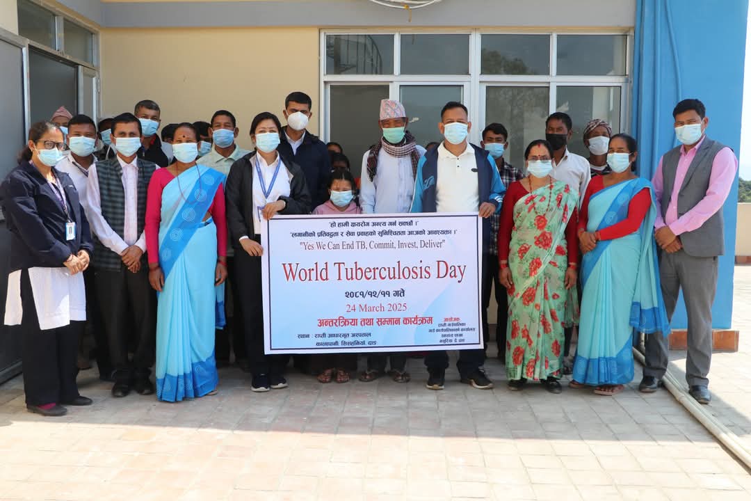 “हामी क्षयरोग अन्त्य गर्न सक्छौं: लगानीको प्रतिबद्धता र सेवा प्रवाहको सुनिश्चितता आजको आवश्यकता” भन्ने नाराका साथ वडा नम्बर ५ स्थित राप्ती आधारभूत अस्पताल कालापानी सिसहनियाँमा कार्यक्रम आयोजना गरिएको हो।