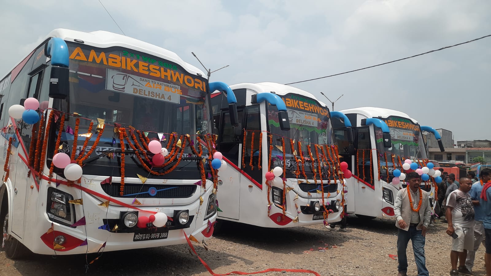 तुलसीपुर, ११ जेठ । दाङको तुलसीपुरमा एकल सिट भएको एसी बस सञ्चालनमा आएको छ । आईतबार अम्बिकेश्वरी सार्वजनिक यातायात प्रालिले २/१ सिट भएका गाडी सञ्चालनमा ल्याएको हो ।