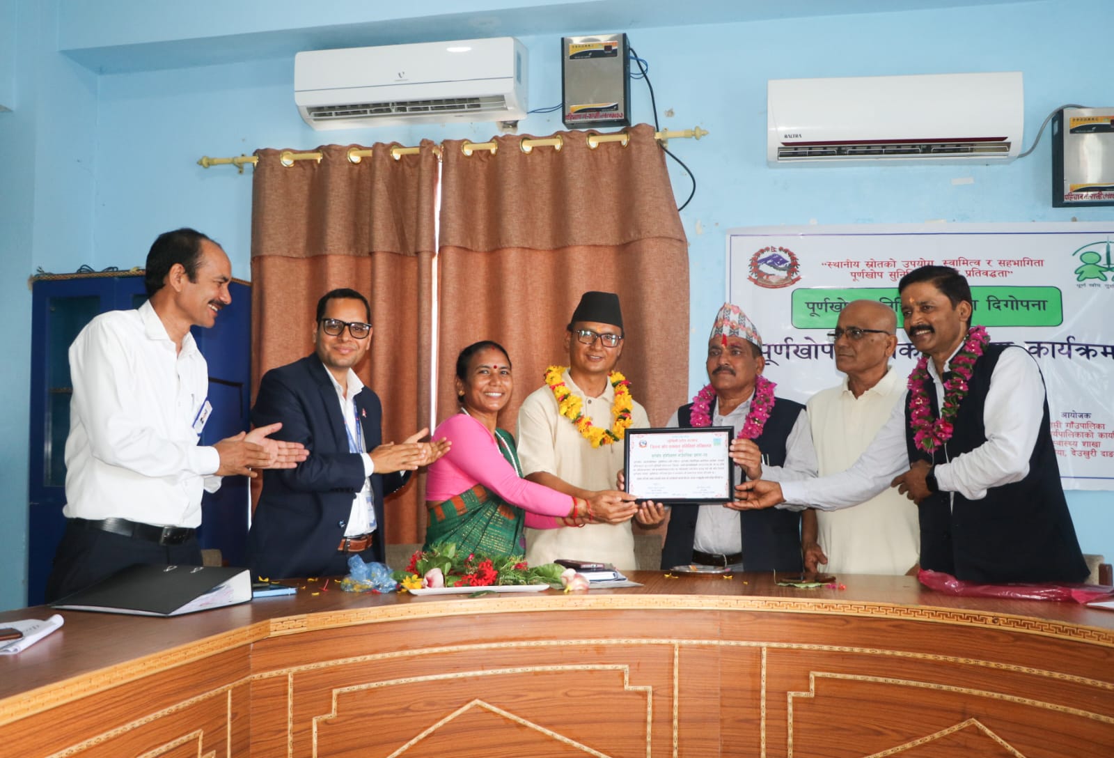 सो अवसरमा प्रत्येक वडालाई पूर्ण खाेप सुनिश्चितताकाे प्रमाणपत्र प्रदान गरिएको थियो।