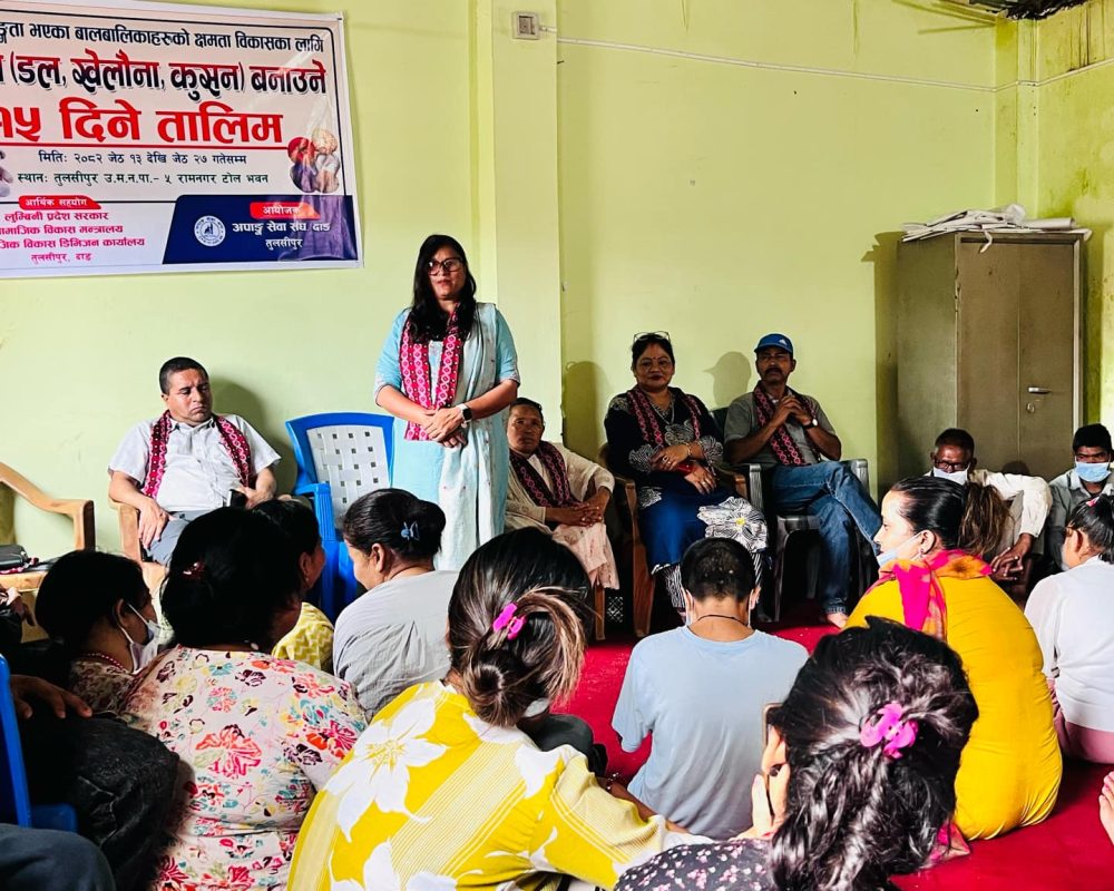 बौद्धिक अपाङ्गता भएका बालबालिका र तिनीहरूका अभिभावकको क्षमता अभिवृद्धि गर्दै आत्मनिर्भर बनाउने उद्देश्यले तुलसीपुरमा १५ दिने विशेष सीपमूलक तालिम सुरु गरिएको छ। अपाङ्ग सेवा संघ तुलसीपुरको आयोजना तथा लुम्बिनी प्रदेश सरकारअन्तर्गत सामाजिक विकास मन्त्रालयको सामाजिक विकास डिभिजन कार्यालयको आर्थिक सहयोगमा कार्यक्रम भएको हो ।