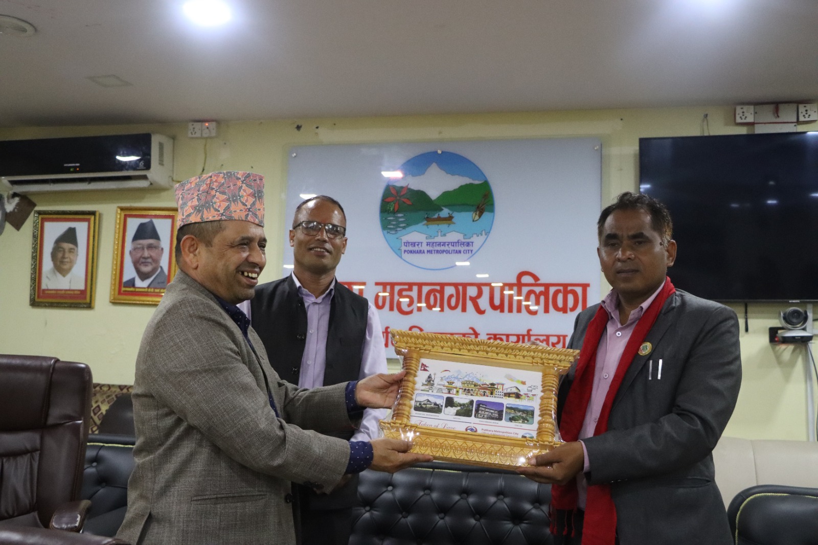 तुलसीपुर उपमहानगरपालिका वडा नं. १२ का वडाध्यक्ष खुसीराम चौधरीसहितको टोली र पोखरा उपमहानगरपालिकाका सूचना अधिकारी कृष्ण प्रसाद तिवारीबीच भेटवार्ता भएको हो ।