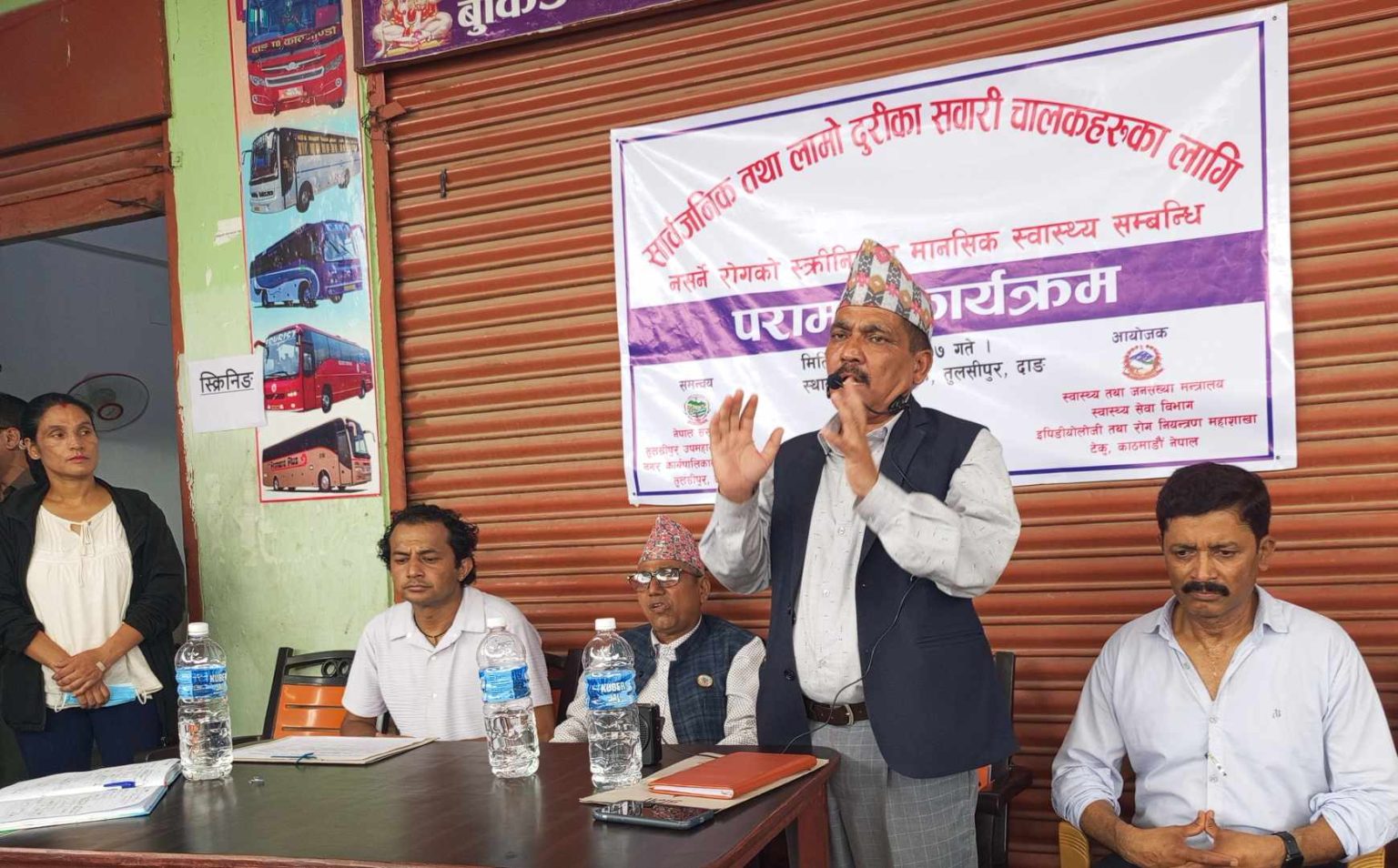 स्वास्थ्य तथा जनसंख्या मन्त्रालय स्वास्थ्य सेवा विभागको आयोजना तथा तुलसीपुर उपमहानगरपालिकाको सहकार्यमा गरिएको नसर्ने रोगको स्क्रिनिङ शिविरमा ५२ जना सवारी चालकहरुको स्वाथ्य जाँच गरिएको छ ।