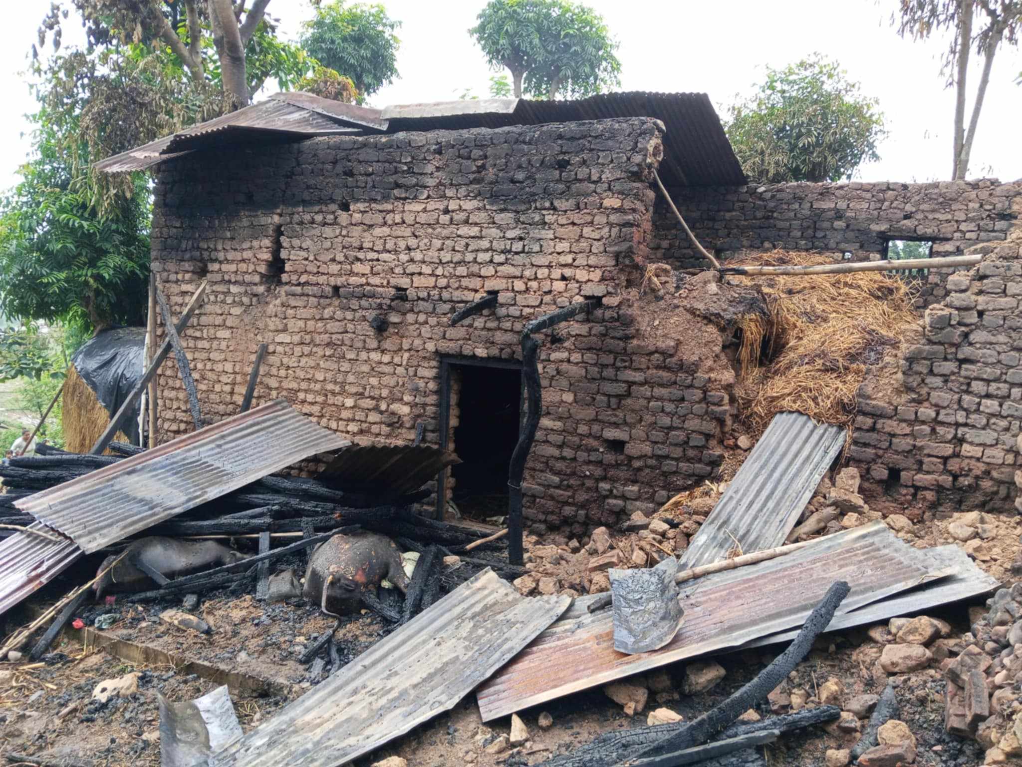 स्थानीय सागर पौडेलको गोठमा चट्याङ लागेर आगो लाग्दा गोठभित्र बाँधिएका दुई भैँसी, तीनवटा खसी, एक बाख्रा र दस वटा कुखुरा जलेर मरेको ईलाका प्रहरी कार्यालय तुलसीपुरका प्रवक्ता प्रहरी निरीक्षक सुर्य रानाले जानकारी दिनुभयो ।