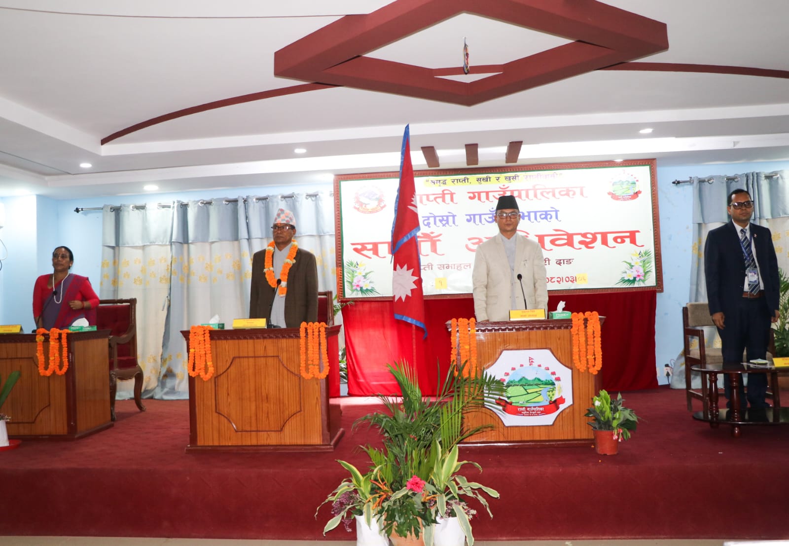 नीति तथा कार्यक्रम प्रस्तुत गर्दै गाउँपालिका अध्यक्ष विष्टले समृद्ध र विकसित राप्ती निर्माण गर्ने लक्ष्यका साथ अगाडि बढिरहेको बताउनुभयो। उहाँले सीमित स्रोत र साधनका बीच जनताको आवश्यकता र अपेक्षालाई प्राथमिकता निर्धारण गरी योजनाबद्ध रूपमा कार्यान्वयन गरिने स्पष्ट पार्नुभयो।
