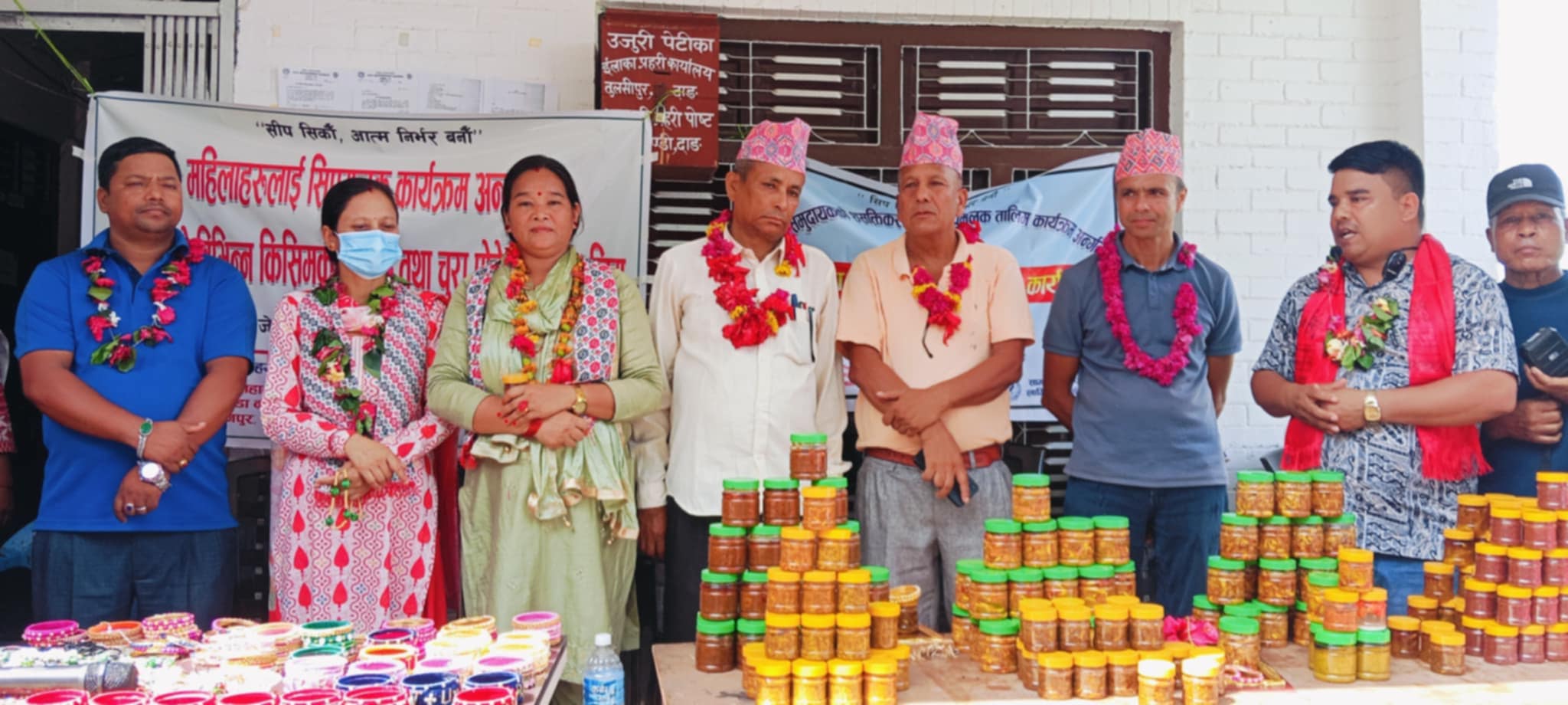 दलित सशक्तिकरण र महिला आत्मनिर्भरता अभिवृद्धि गर्ने उद्देश्यसहित दाङको तुलसीपुर–१७ मानपुरमा सञ्चालित पञ्चेबाजा, अचार तथा चुरा–पोते बनाउने तालिम सम्पन्न भएको छ।