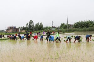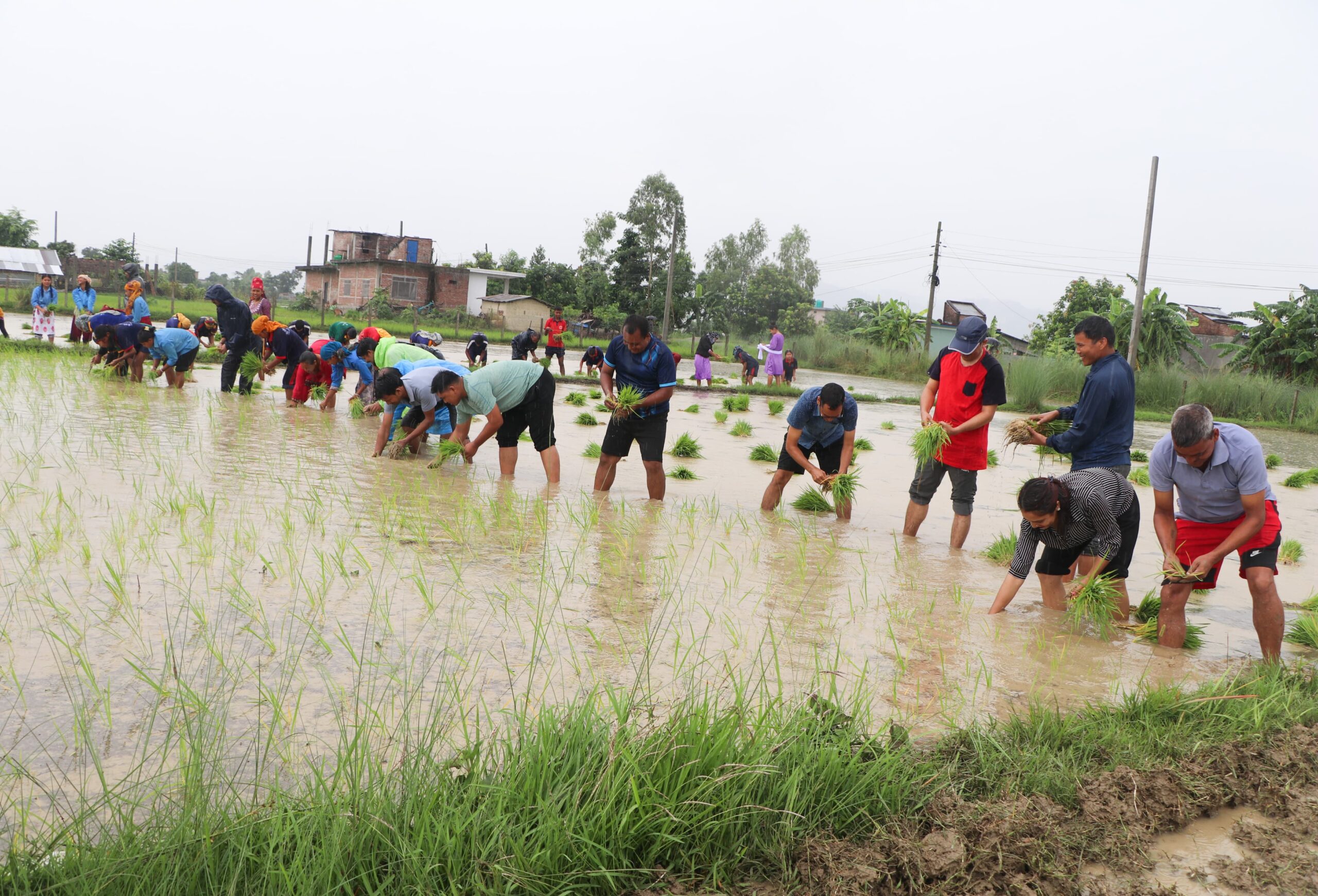 “धान बालीमा सघनता : खाद्य सुरक्षा र आत्मनिर्भरता” भन्ने मूल नाराका साथ महोत्सव सर्वोदय माध्यमिक विद्यालय सिसहनियाँको वडा नं. ७ बड्का सिसहनियाँमा रहेको करिब एक बिघा खेतमा धान रोपेर मनाइएको हो।