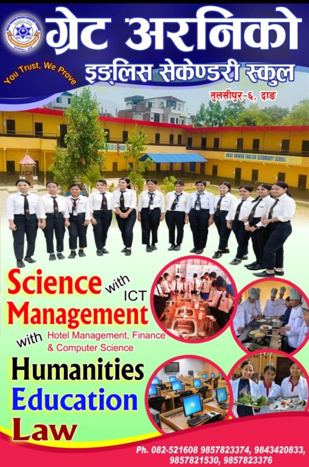 न्युनतम शुल्कमा गुणस्तरीय शिक्षाको पर्यायवाची ग्रेट अरनिको मावि तुलसीपुर दाङले बिगत २८ वर्ष देखि अनवरत रुपमा न्युनतम शुल्कमै पनि गुणस्तरिय शिक्षा दिन सकिन्छ भन्ने बलियो उदाहरण दिएको छ। विशेष गरि पश्चिम दाङ, बाँके, सल्यान, रोल्पा, रुकुम, जाजरकोटलगायत साबिक राप्ती र कर्णाली प्रदेशबाट विद्यार्थीहरु अध्ययन गर्ने गरेका छन।
