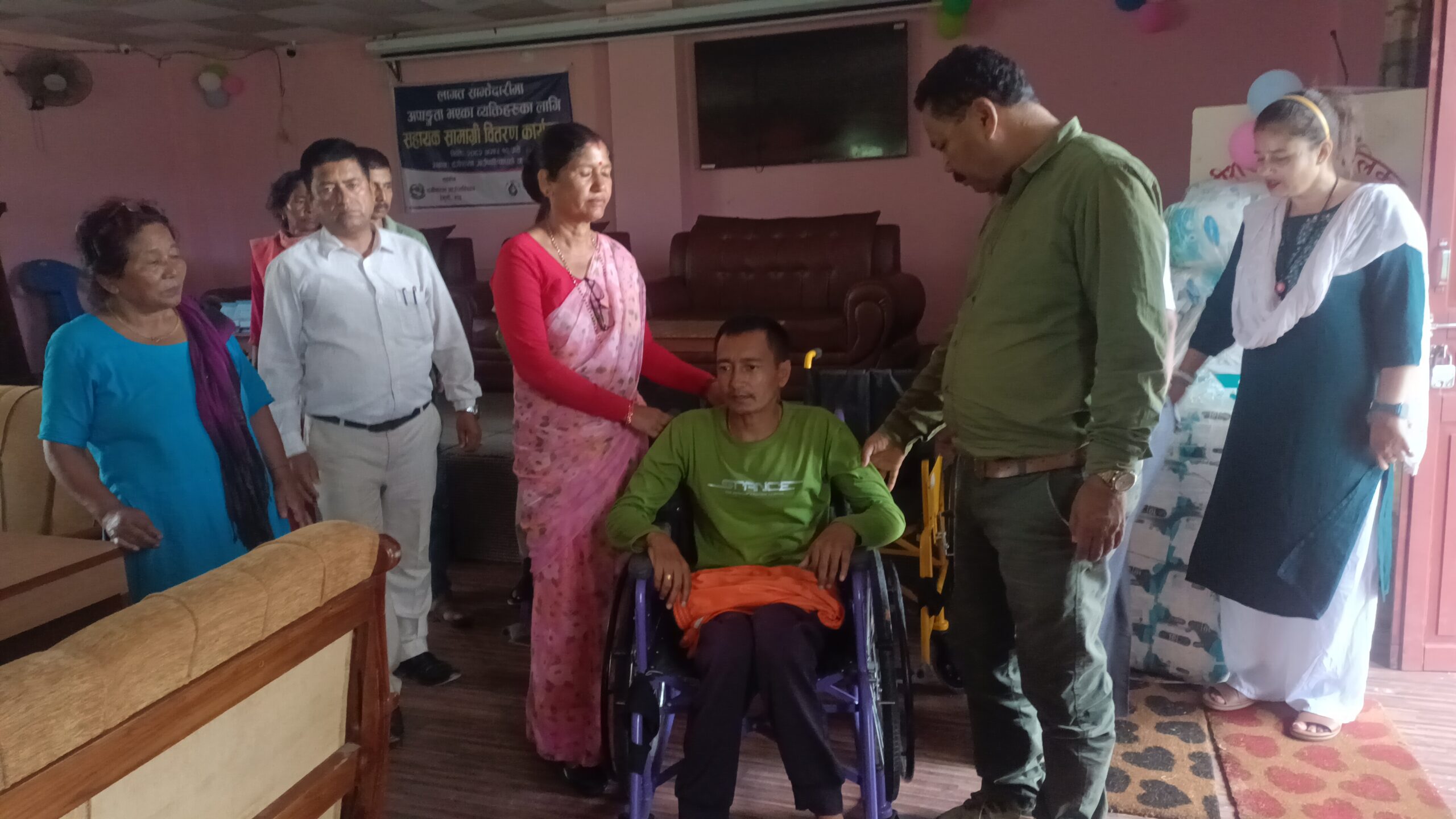 दाङको दंगीशरण गाउँपालिकाले अपांगता भएका ब्यक्तीहरुका लागि सहायता सामाग्री वितरण गरेकोछ । दंगीशरण गाउँपालिकाको आयोजना तथा राप्ती वहिरा संघ दाङको सहजिकरणमा गाउँपालिकाभित्रका अपांगता भएका ब्यक्तीहरुका लागि सहायता सामाग्री वितरण गरिएको हो । कार्यक्रममा हुइल चिएर ३ जना, ५ जोडि बैशाखी, स्टिक २ जनालाइ, हेरीङ डिभाइस ६ जनालाइ,९२ वटा डाइपर लगायतका सामाग्री वितरण गरीएको हो ।