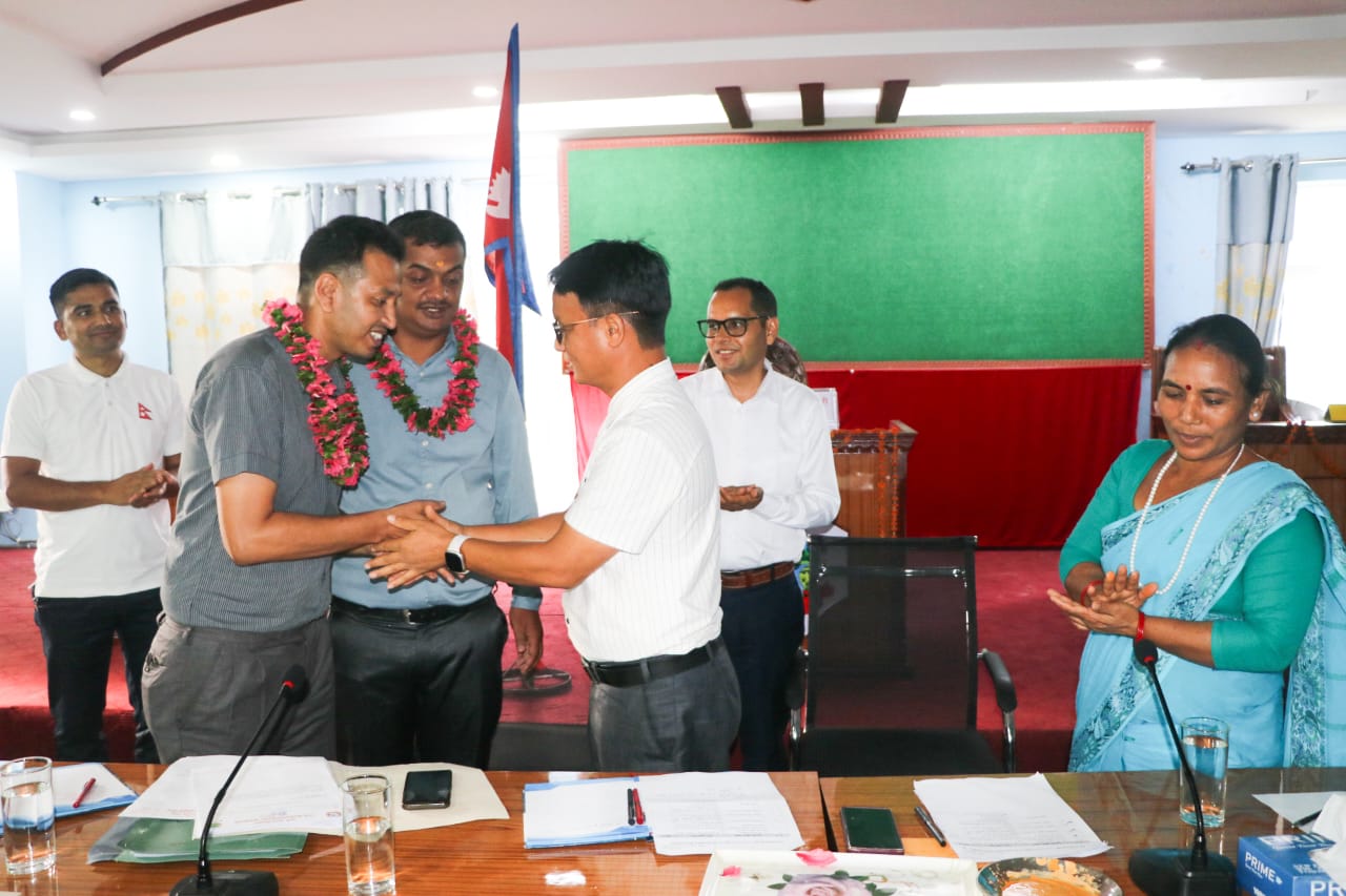 स्वागत कार्यक्रममा गाउँपालिका अध्यक्ष प्रकाश विष्ट, उपाध्यक्ष कमलापति चौधरी, प्रमुख प्रशासकीय अधिकृत देविराम पाठकलगायतले टीका र फूलमाला अर्पण गर्दै स्वागत गर्नुभयो।
