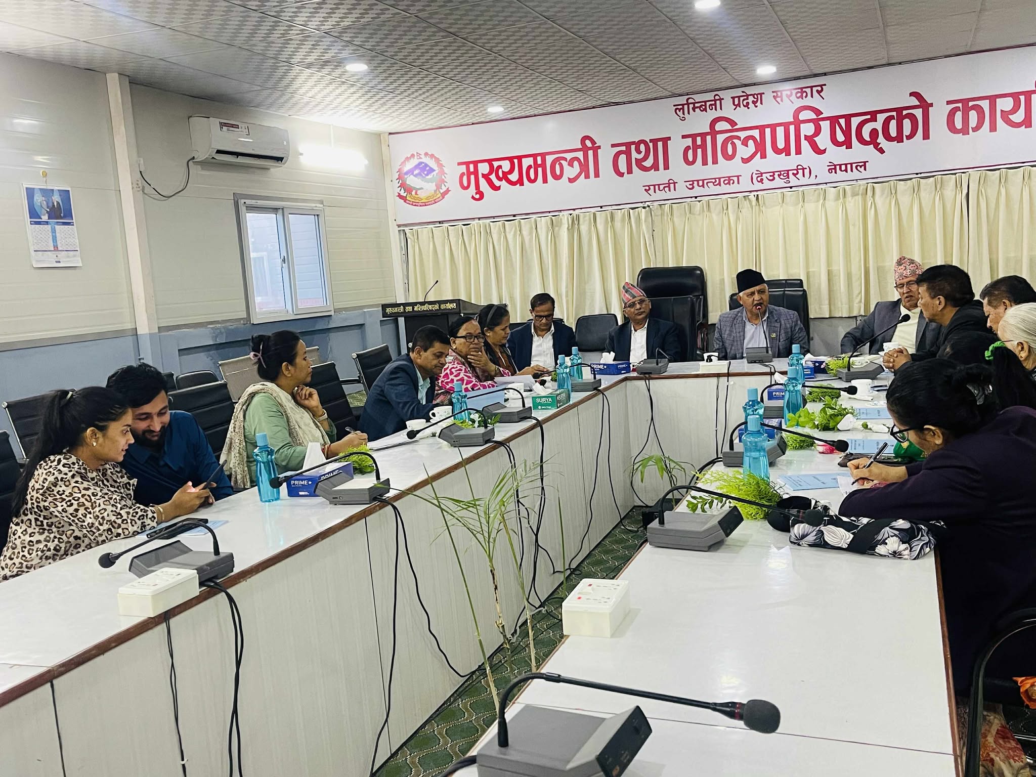 बुधवार राप्ती उपत्यका देउखुरीस्थित मुख्यमन्त्री तथा मन्त्रिपरिषद्को कार्यालयमा राष्ट्रिय सभाको संघीयता सवलिकरण तथा राष्ट्रिय सरोकार समितिसँगको छलफलका क्रममा मुख्यमन्त्री आचार्यले लुम्बिनी प्रदेशले संघीयता सुदृढीकरणका क्षेत्रमा उल्लेखनीय प्रगति गरेको स्पष्ट पार्नुभएको हो ।