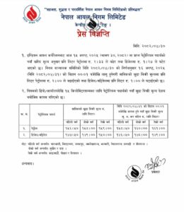 भारतीय आयल कर्पोरेसन (आईओसी) ले पठाएको खरिद मूल्य अनुसार नयाँ भाउ तोकिएको निगमले जनाएको छ ।