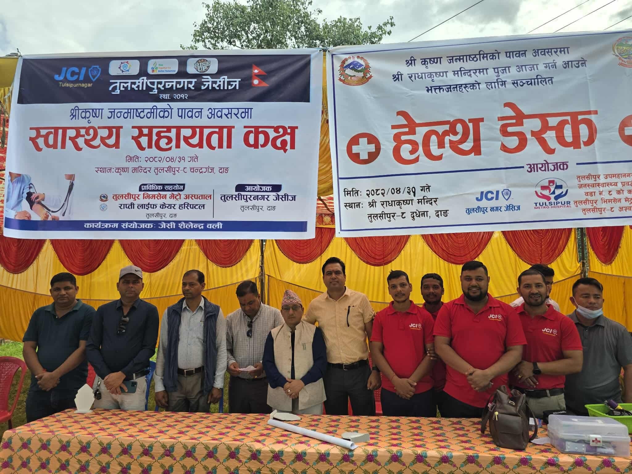 तुलसीपुर,३१ साउन। तुलसीपुर नगर जेसिजले शनिबार कृष्ण जन्माष्टमीको अवसरमा हेल्थ डेस्क संचालन गरेको छ ।