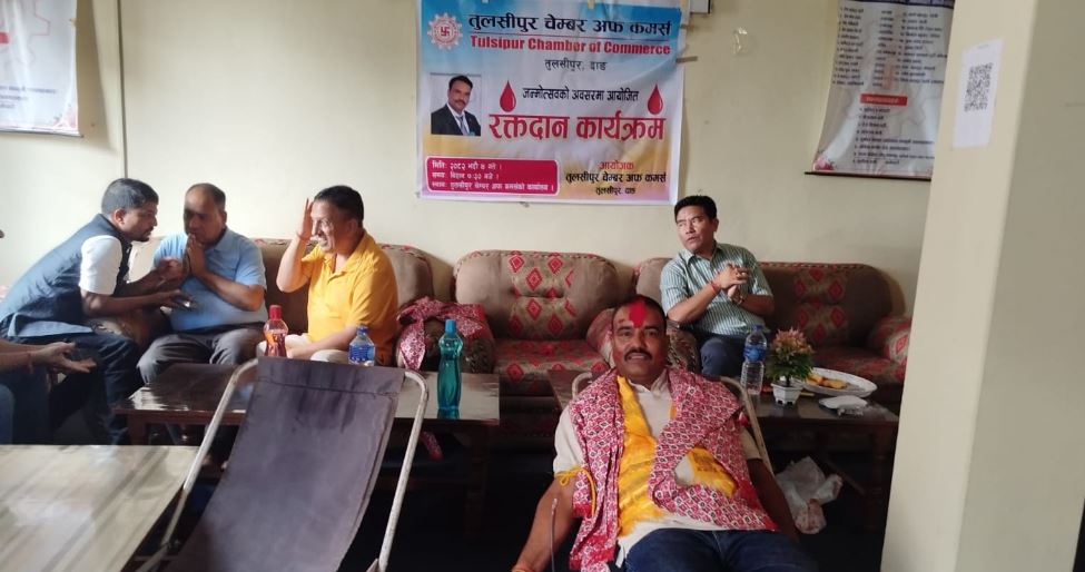 तुलसीपुर, ४ भदौ। तुलसीपुर चेम्बर अफ कमर्शका अध्यक्ष ऋषिराज भण्डारीले जन्मदिनको अवसरमा रक्तदान गरेका छन् ।