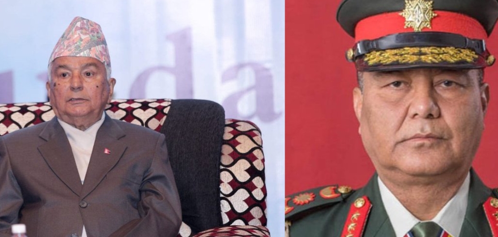 काठमाडौँ, २६ भदौ । राष्ट्रपति रामचन्द्र पौडेल र प्रधान सेनापति अशोकराज सिग्देलबिच बिहीबार साँझ भेटवार्ता भएको छ ।