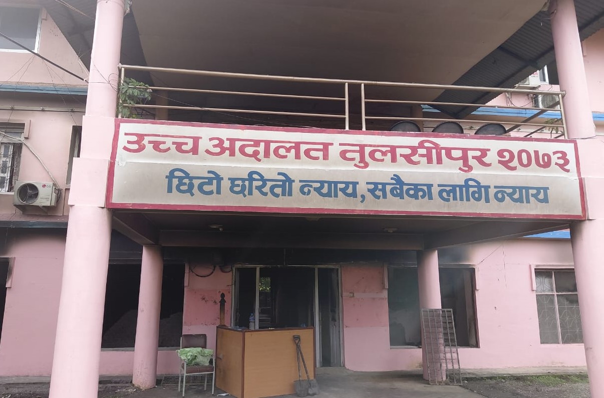 दाङको तुलसीपुर स्थित उच्च अदालत पनि जलेर नष्ट छ । ५ वटा गाडी र ३६ थान कम्प्युटर जलेका तथा हराएका छन् ।“केही जलेका छन्, भने केही हराएका छन्”,सूचना अधिकारी कृष्ण शर्माले भने“तोडफोड र आगजनी पछि पनि बचेका सामग्रीहरु चोरी गरेर पनि लगिएको छ ।”