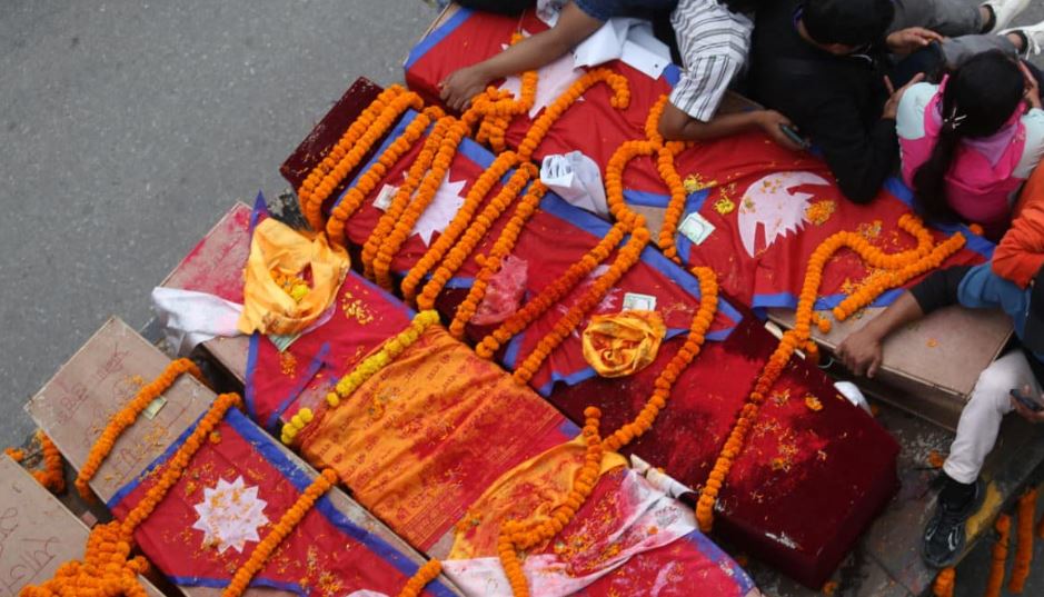 मृत्यु भएकाहरुको मंगलबार शवयात्रासहित पशुपति आर्यघाटमा राष्ट्रिय सम्मानका साथ अन्त्येष्टि गरिएको थियो । कतिपय युवाहरुको शव उनीहरुकै जिल्लामा पुर्याइएको छ ।