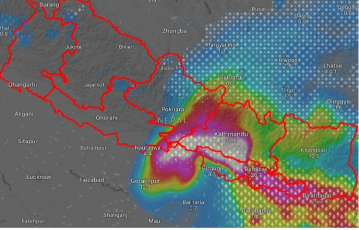 देशका अधिकांश स्थानमा शनिबार दिउँसोदेखि भारी तथा अति भारी वर्षा हुने मौसमविद्ले बताएका छन्। आज मध्यम तथा हल्का वर्षा हुने र शनिबारदेखि आइतबारसम्म भने भारी वर्षा हुने प्रक्षेपण गरिएको छ।