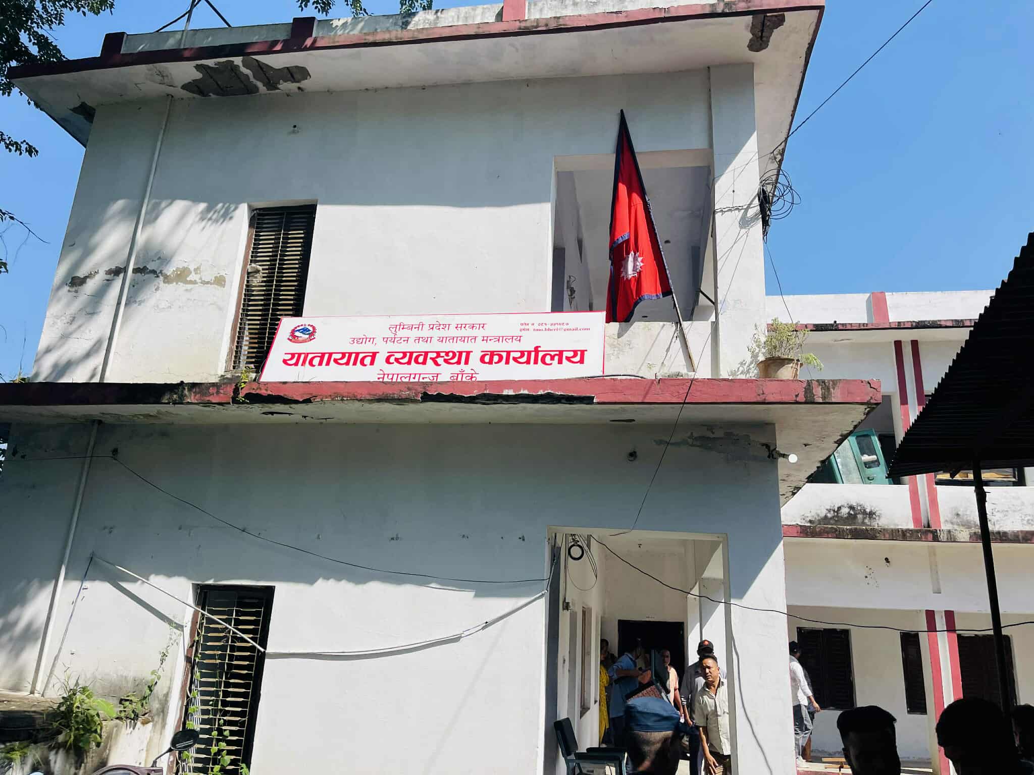 नेपालगञ्जमा रहेको सामाजिक विकास डिभिजन कार्यालयमा यातायात व्यवस्था कार्यालय स्थानान्तरण गरी सेवा सुरु गरिएको हो । आइतबार मुख्यमन्त्री चेतनारायण आचार्यको नेतृत्वमा लुम्बिनी प्रदेश सरकारको एक प्रतिनिधिमण्डलले सेवा सञ्चालनको अवस्थाबारे जानकारी लिएको हो ।
