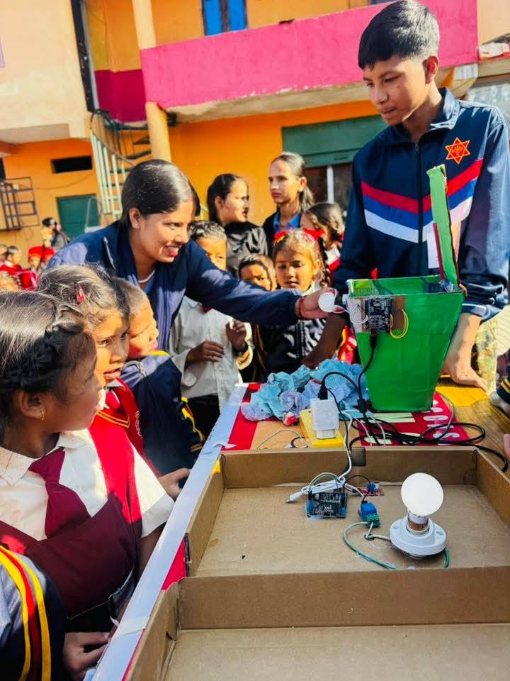 विदेश सामाजिक सञ्जाल मार्फत देखेका विद्यार्थीहरुले त्यो डस्टविन बनाएका थिए । त्यति मात्रै होईन्, रिमोर्टको सहायताले चल्न सक्ने कार, नजिक ताली बजाउँदा बल्न सक्ने बक्ति समेत बनाएर प्रदर्शन गरेका थिए ।