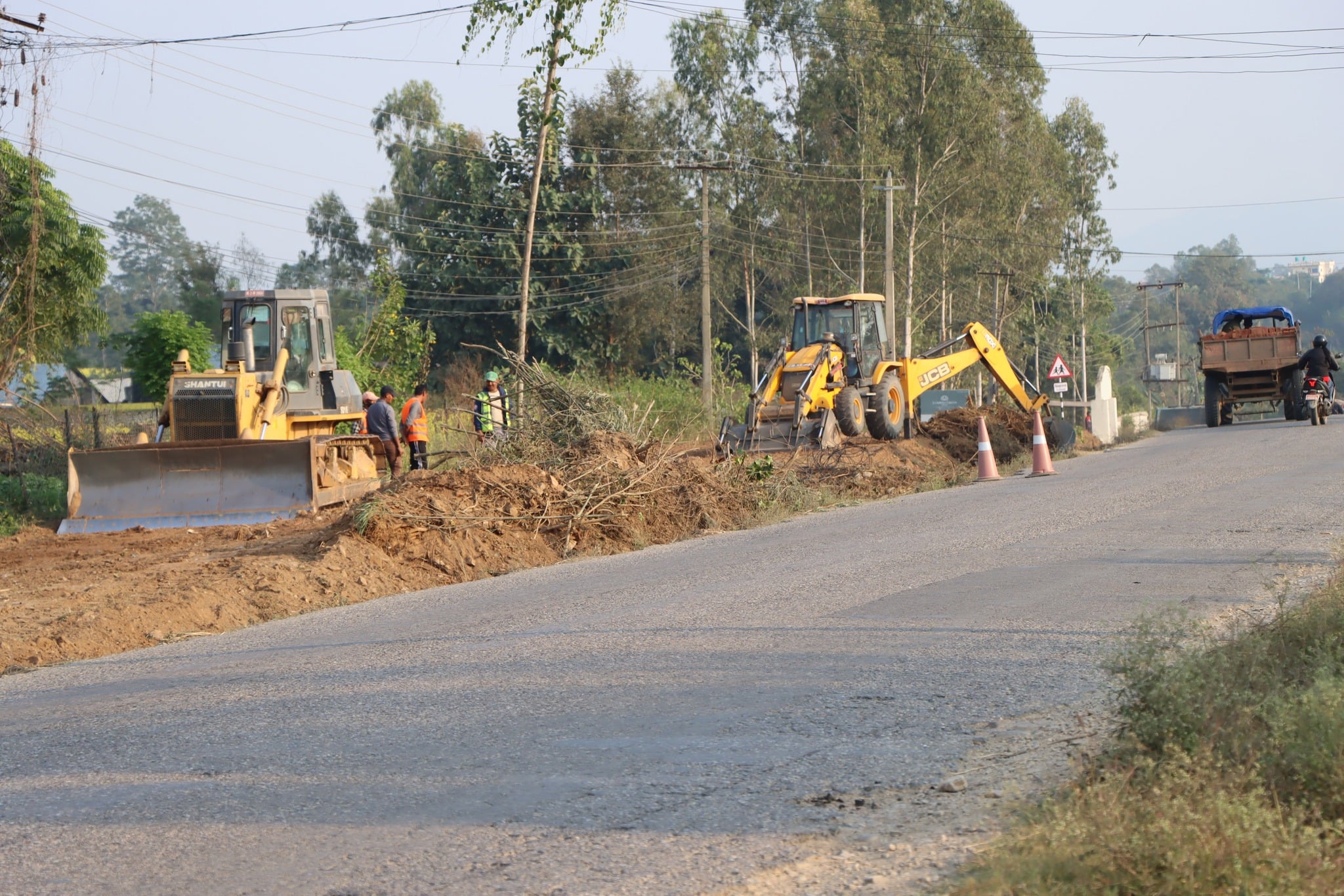 दाङको घोराही–तुलसीपुर चारलेन सडकको काम धमाधम भइरहेको छ । गुर्जे खोलादेखि सुरु भएको काम अहिले नारायणपुरसम्म पुगेको छ । निर्माण कम्पनी श्री दिवा–बन्दना भगवती जेभिका कन्ट्रयाक्ट म्यानेजर सुनिल ढुंगानाका अनुसार अहिले पाँच वटा जेसीवीले माटो ‘फिलिङ्ग’ गर्ने र झाडी फाल्ने काम गरिरहेका छन् । अबको केही दिनमा थप तीन वटा जति जेसीवी थप्ने तयारी रहेको उनको भनाई छ । अहिलेको काम अनुसार ४० दिनमा तुलसीपुरसम्म काम गर्न सकिन्छ । तर, ग्राबेल र कालोपत्रेका काम तुलसीपुरसम्म गर्न तीन वर्षको सम्झौता भएकाले अहिले नै झाडी हटाए पनि पुनः फैलिन सक्ने भएकाले हापुरखोलासम्म माटो फिलिङ्ग गर्ने तथा झाडी फाल्ने काम हुने उनले बताए । अबको एक हप्तापछि मजदुरहरु समेत ल्याएर काम गर्ने तयारी रहेको छ ।