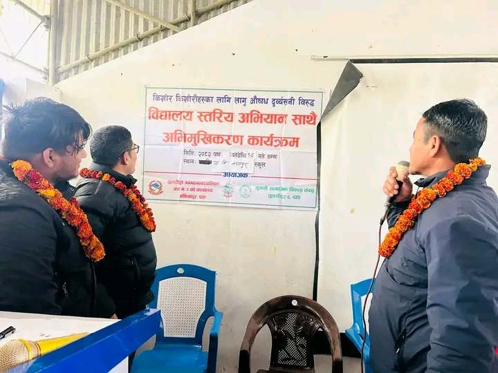 तुल्सीपुर उपमहानगरपालिका वडा नं. २ को कार्यालय र तुल्सी सामाजिक विकास केन्द्र संस्थाको संयुक्त आयोजनामा किशोर–किशोरीहरूलाई लक्षित गरी लागुऔषध दुर्व्यसनी विरुद्ध विद्यालय स्तरीय अभियान तथा अभिमुखीकरण कार्यक्रम सम्पन्न भएको छ ।