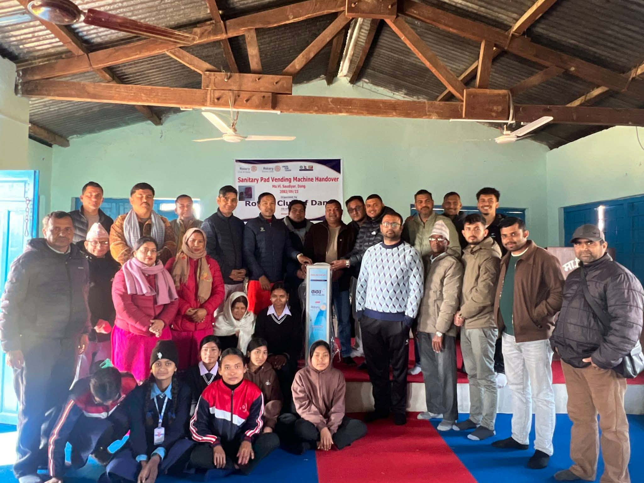 रोटरि क्लब अफ घोराहि दाङले श्री मा.बि सौडियारलाई सेनेटरि प्याड भेन्डिङ मेसिन आज एक कार्यक्रमका बिच हस्तान्तरण गरेको छ । क्लबका अध्यक्ष रोशन दाहालको अध्यक्षता तथा रोटरि क्लब डिष्ट्रिक ३२९२ का असिस्टेण्ट गभर्नर बिरु रावतको प्रमुख आतिथ्यता एब नेपाल पत्रकार महासंघका केन्द्रीय सचिव सविन प्रियासनको विशिष्ट अतिथिता र तुलसीपुर उद्योग संघका पूर्व अध्यक्ष बिमल रिजालको विशेष उपस्थितिमा मेसिन हस्तान्तरण कार्यक्रम सम्पन्न भएको थियो।