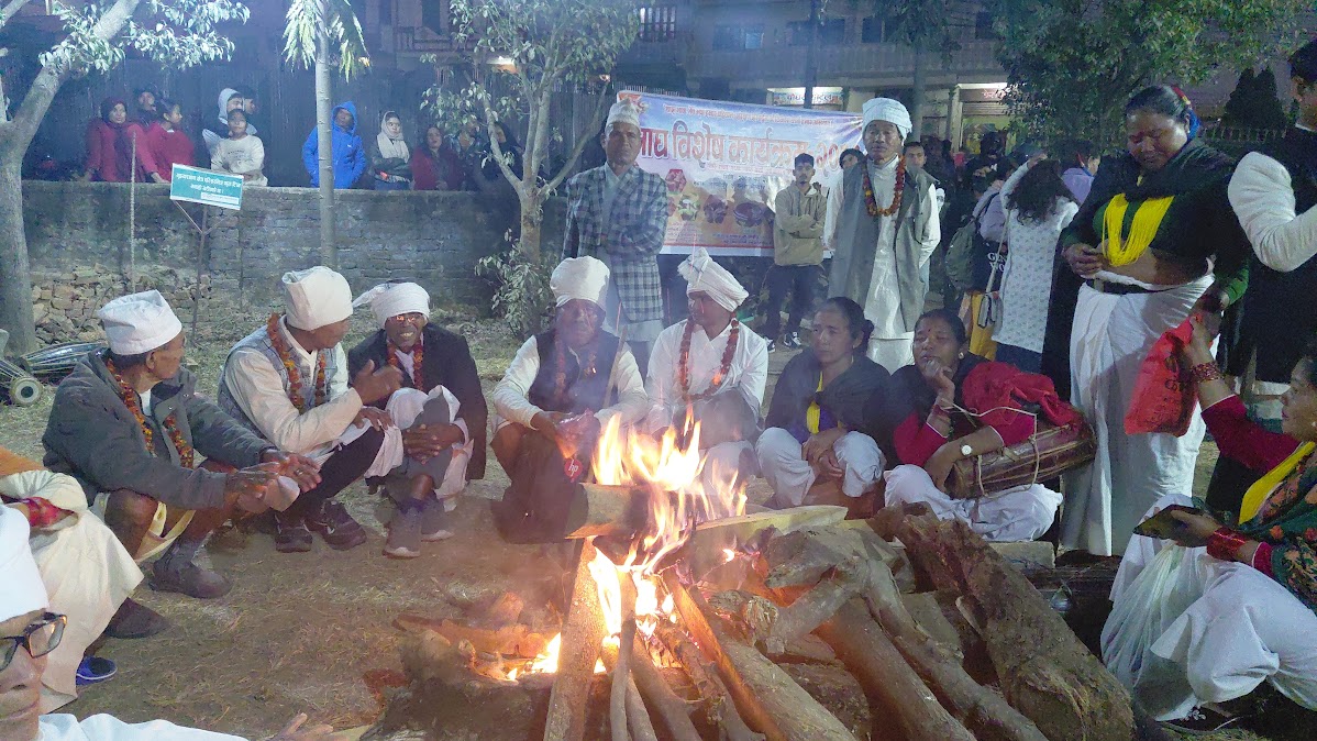 थारु समुदायले माघीको अघिल्लो दिन अर्थात पुसको अन्तिम दिन रातभर ढुम्रु नाच्ने चलन थियो । गाउँका थारु समुदायका अगुवा वा महतवाको घरमा जम्मा हुने र रातभर ढुम्रु गीत गाउने र नाच्ने चलन थियो । “गीत गाउने, नाच्ने र रातभर दाउराको आगो ताप्ने चलन थियो”, थारु अगुवा आशाराम चौधरीले भने “ यो हाम्रो संस्कार हो ।”