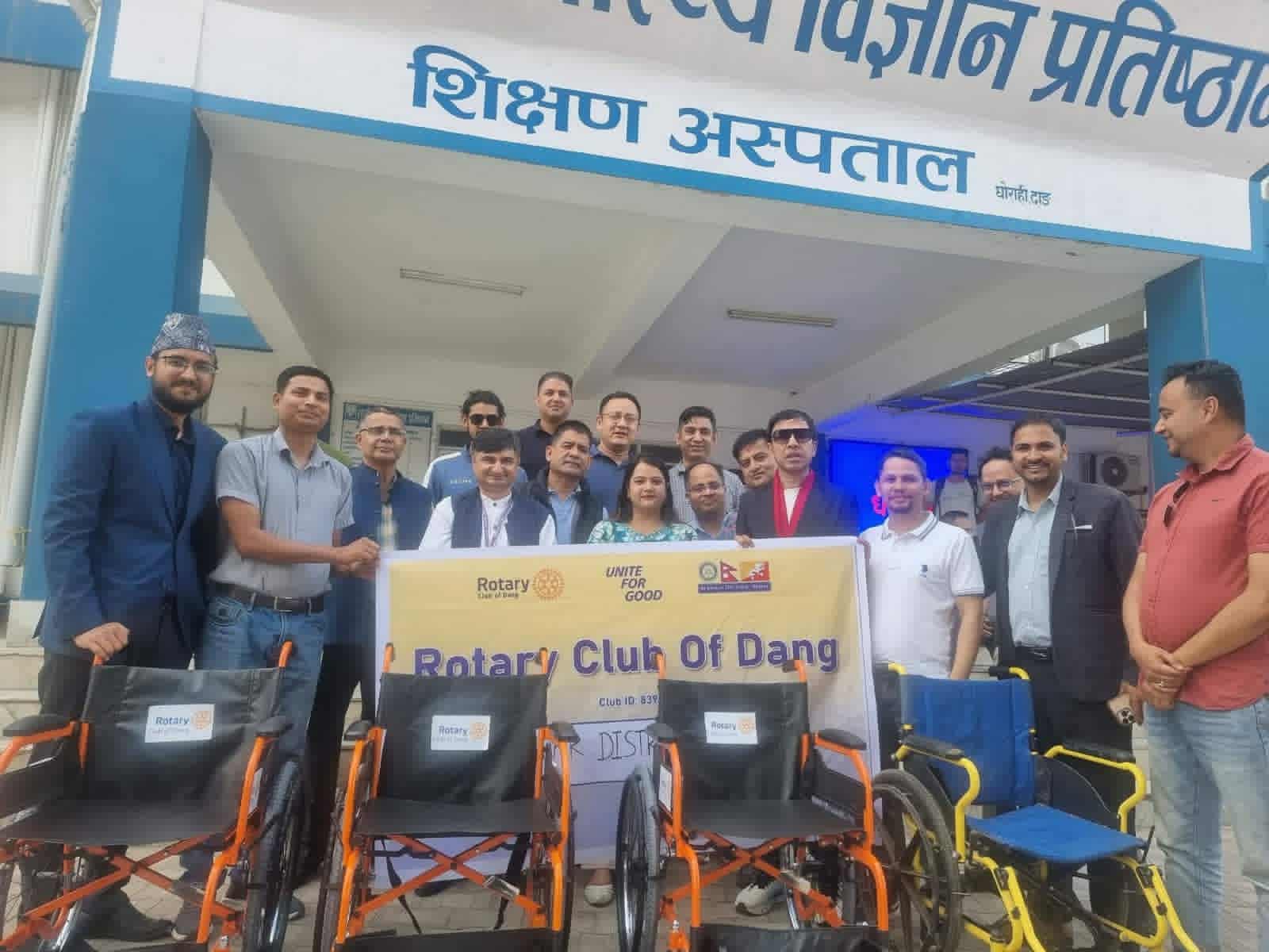 रोटरि क्लब अफ दाङले राप्ती स्वास्थ्य बिज्ञान प्रतिष्ठानलाई चार थान “ह्वीलचेयर हस्तान्तरण गरेको छ । क्लबका अध्यक्ष रोशन दाहालले प्रतिष्ठानका निमित्त उपकुलपति तथा रजिस्ट्रार प्रा। श्याम लम्साललाई हस्तान्तरण गर्नु भएको हो ।